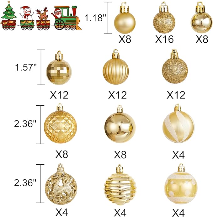 - Super Value Christmas ball ornaments Set: This Christmas ball ornaments set contains 100 pieces of assorted Christmas ball ornaments in 3 sizes. Those Christmas balls' diameters are 3cm/1.18'' and 4cm/1.57'' and 6cm/2.36''. Various sizes and styles for meeting your needs in Christmas tree ball ornaments decorations.