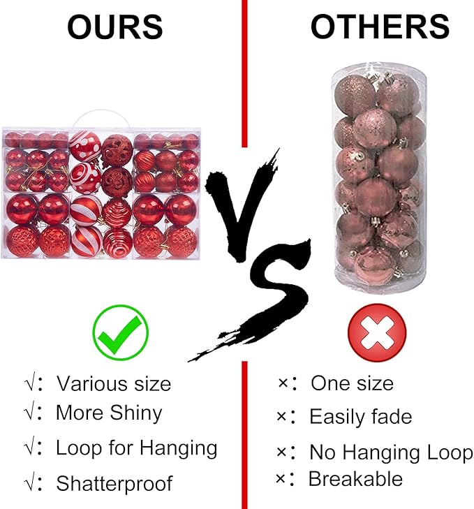 - Buy with Confident: All our Christmas ball ornaments are guaranteed by quality. Take your confidence to choose us. If there are any problems with our products, please contact us at the first time, we support unconditional return and exchange. Merry Christmas!