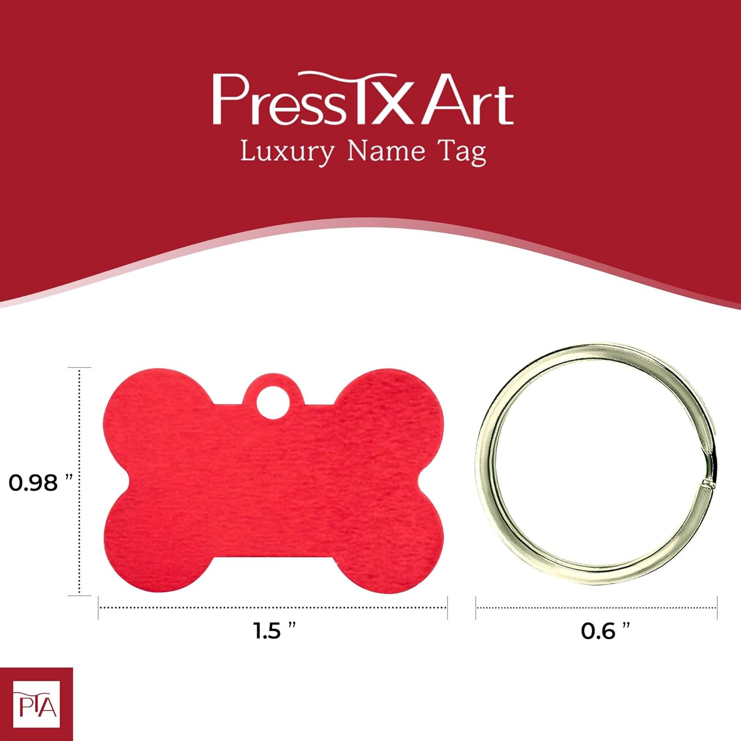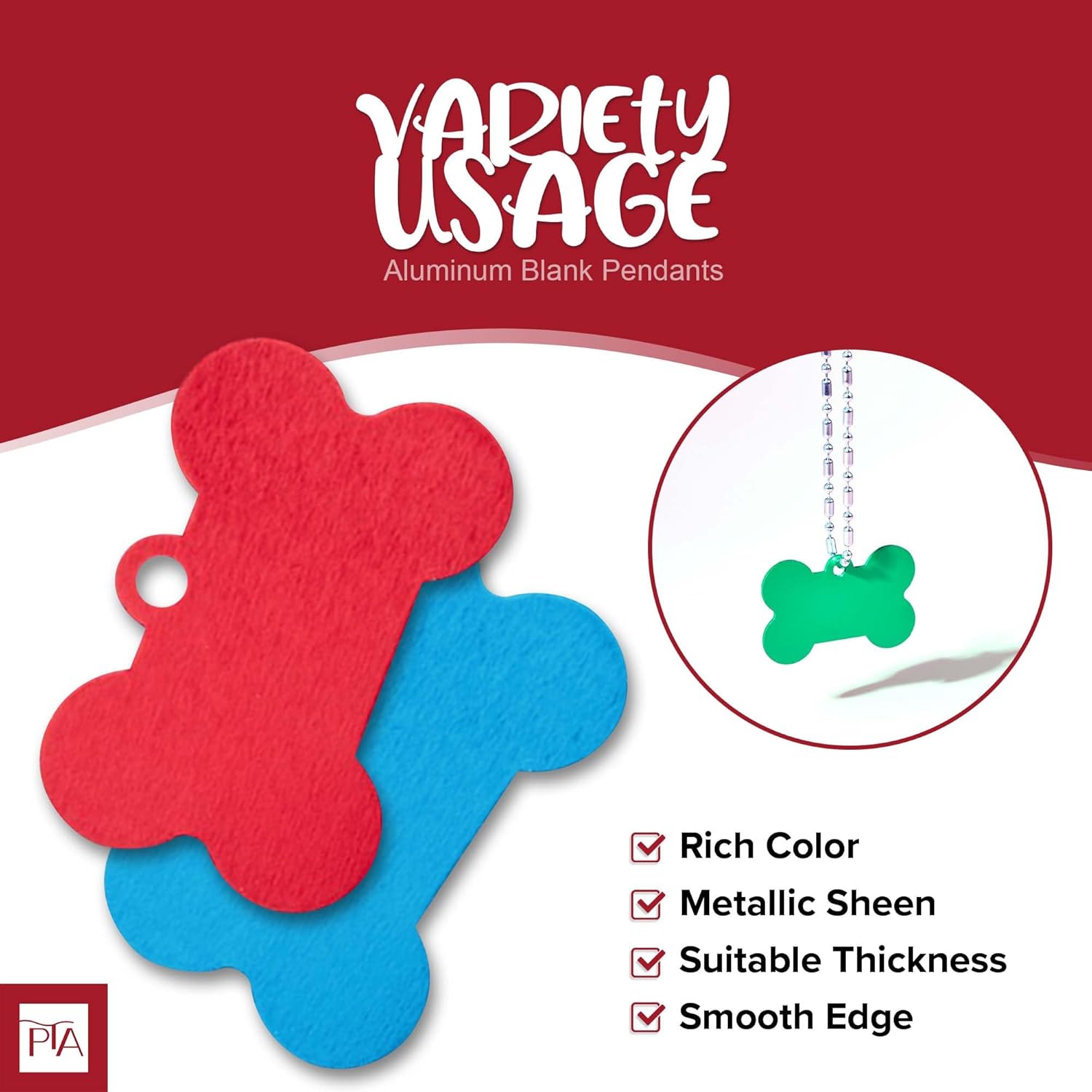 [Press TX Art] 40 Pcs Round(Circle), Bone, Rectangle, Heart Anodized Aluminum Stamping Blanks Tags 10 Mixed Colors Metal Engraving ID Name Tags with Rings (Bone in 10 Colors)