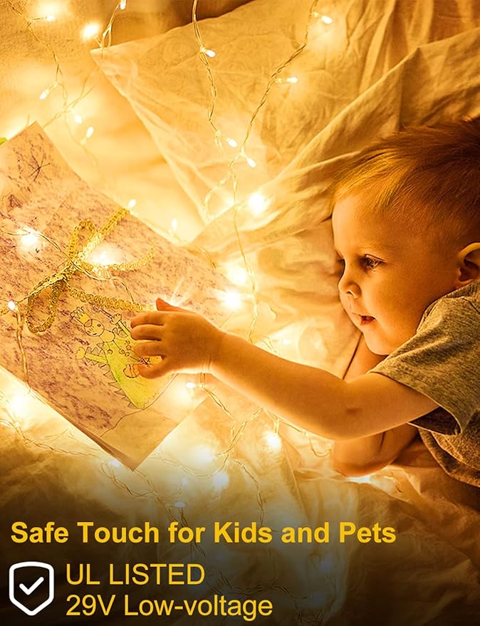 - Upgraded LED Super Bright String Lights: Equipped with latest upgraded LED bead, The Christmas lights offers super bright light to add amazing atmosphere to decorate your holiday. With unique PVC intensified cord material, The fairy string lights is strong, non-flammable and resistant to weather changes. LED beads are made of high durability and the energy efficiency material, saves up to 90% energy compared to traditional incandescent bulbs and last for at least 10 holiday seasons