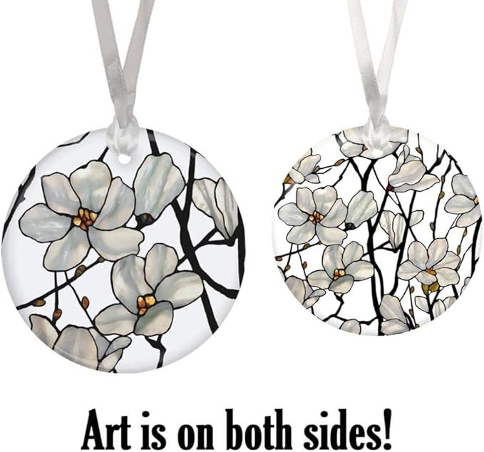 - FINE ART DESIGNS: Artfully designed keepsake ornament showcases Tiffany's famous oil painting, "Magnolia." The design is captured with an artist’s eye for detail, light, and color. Different views of the art appear on the front and on the back.