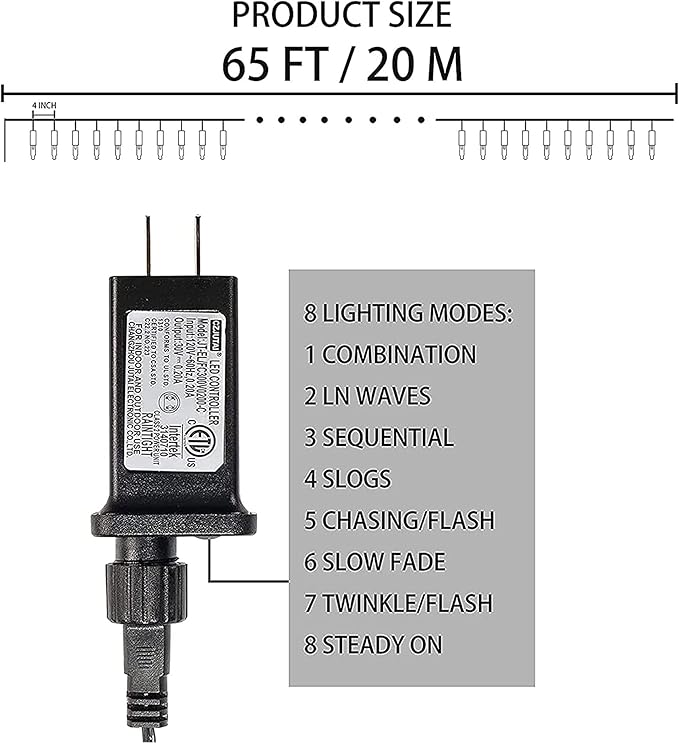 - 8 Modes: Halloween 200 LED mini string lights with 8 light modes: combination, in waves, sequential, slogs, chasing/flash, slow fade, twinkle/flash, by pressing the button on the plug to change the mode.