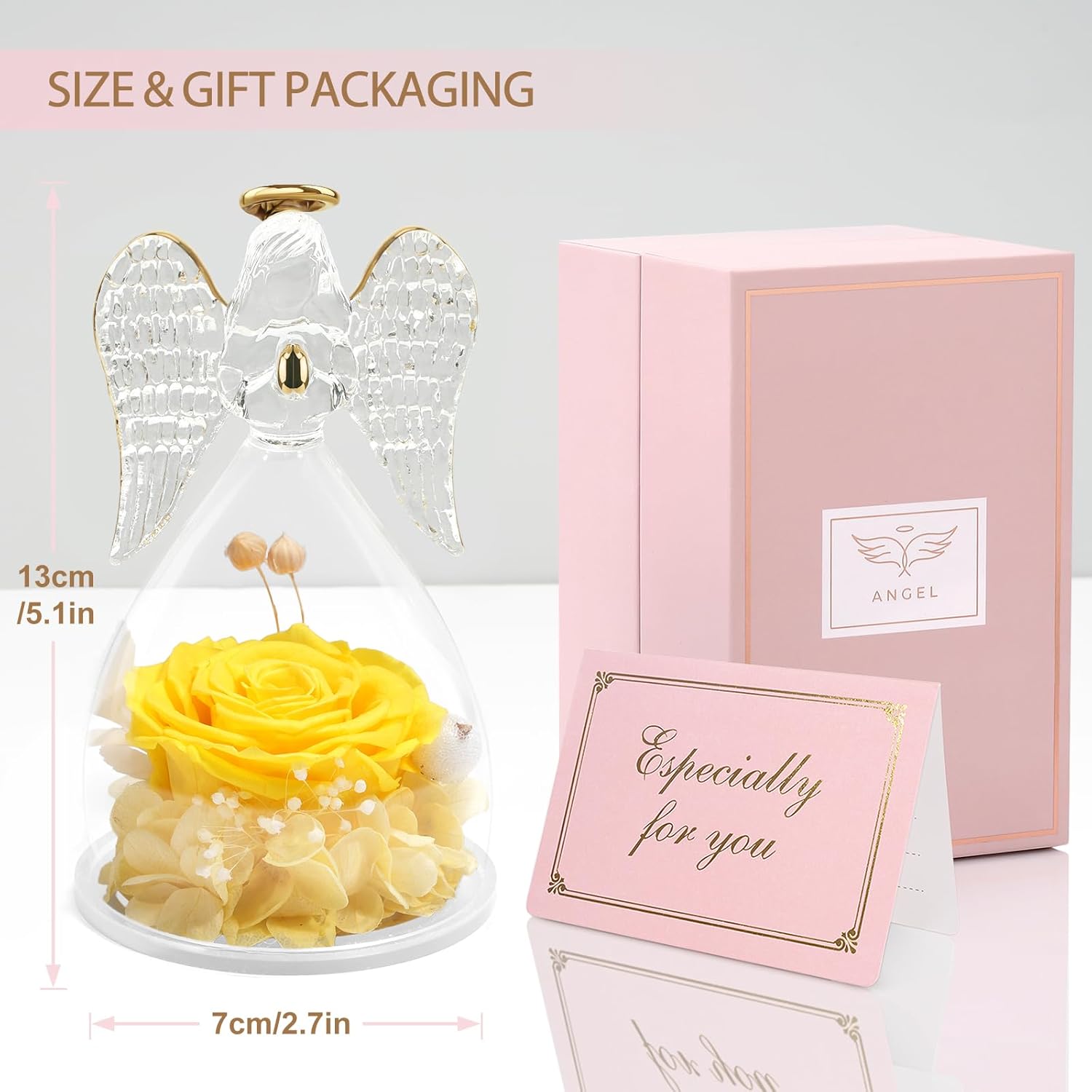 Yamonic Mom Birthday Gifts for Mom,Angel Figurines with Real Rose Gifts for Her Mom Grandma,Preserved Flowers Rose Angel Figurines for Mothers Day Christmas Anniversary Birthday Gifts for Wife(Yellow)