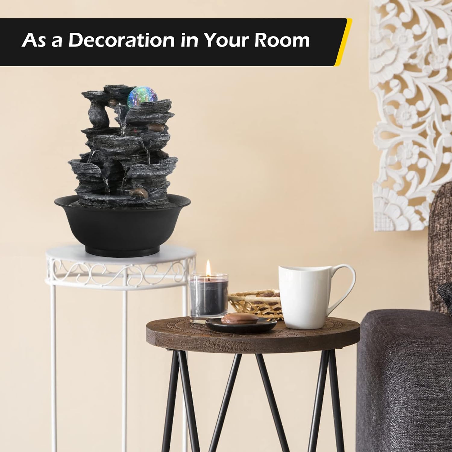 - Easy To Use-The portable indoor water tabletop fountain is easy to use, just add water to the indoor waterfall fountain and plug in a standard power outlet. Then you can enjoy the soothing water effect of this indoor fountain, which is very suitable for decoration in any room.