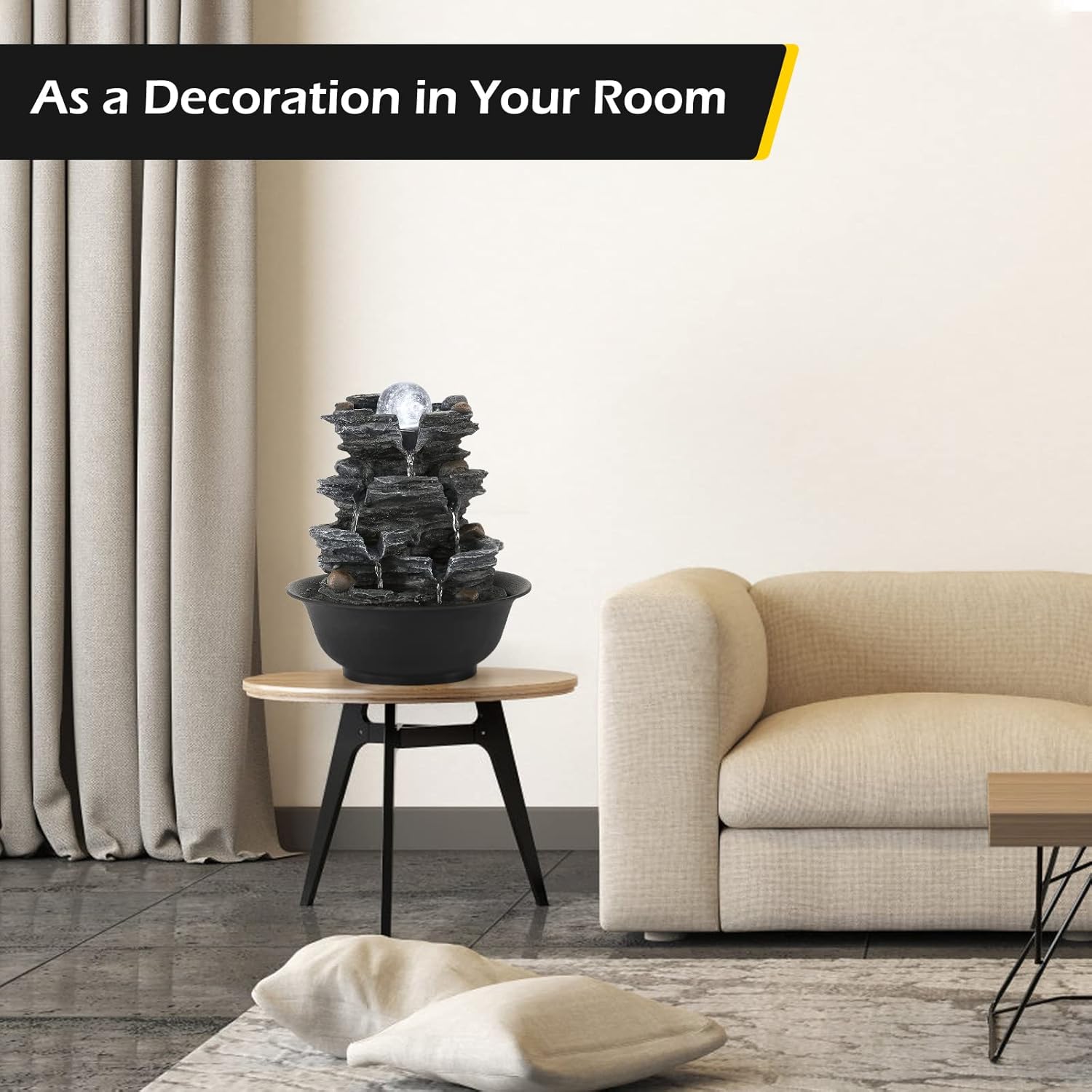 - Easy To Use-The portable indoor water tabletop fountain is easy to use, just add water to the indoor waterfall fountain and plug in a standard power outlet. Then you can enjoy the soothing water effect of this indoor fountain, which is very suitable for decoration in any room.