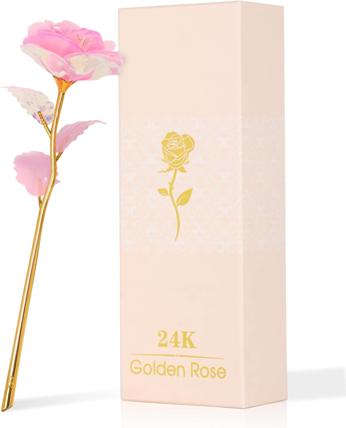 - Forever Eternal Rose Birthday Gifts for Women: Crystal flowers are handcrafted by skilled artisans, the petals and leaves are made of plastic and rose stems are made of polyethylene and gilded with gold foil. Glass roses come in a beautiful pink gift box and can be given directly to her. Box size: 10.6" x 3.9" x 2.6".