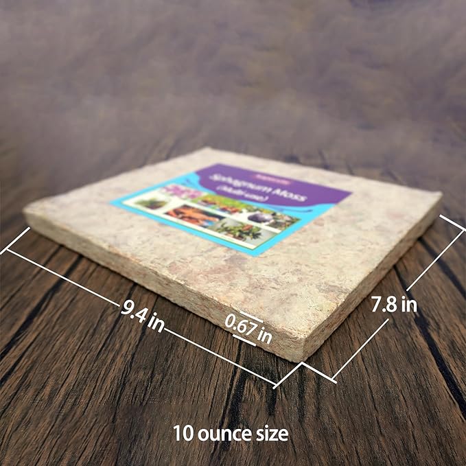 - Notice: Kapecute sphagnum moss are natural and not over processed that the water will a bit of get dirty when soaking it, with some natural earthy smell. Purely hand-packed, the weight and size of each package will vary, but the weight of the product is greater than 10oz (compressed from about 34 QT of natural dried and fluffy sphagnum moss).