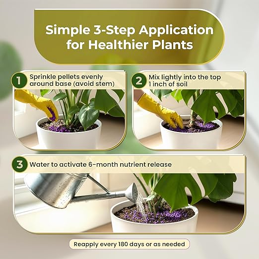 - BALANCED NUTRIENT FORMULA — The 18-6-8 slow-release fertilizer provides a blend of nutrients commonly used for indoor plant care.