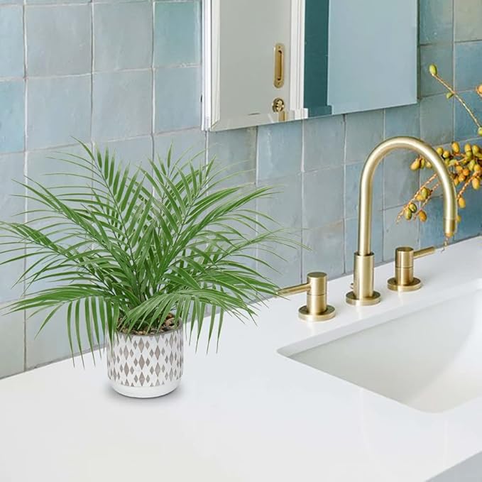- PREMIUM QUALITY POTTED PALM PLANTS: Each realistic fake palm plants are made of PE and pebble soil blend. small faux plant in pots are solid and great textured in touch, giving a hint of tropical appeal to your home. lifelike house plants "Hollyone" brand assurance is worthy of your trust