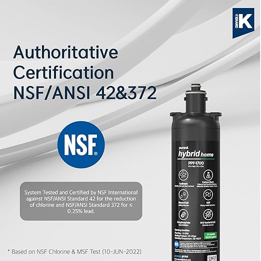 - [Water Filtration Functions] Pureal hybrid home is certified by NSF 42&372. This filter includes sediment, carbon block, mineral ball ceramics, KDF, and polyphosphate. It reduces chlorine, rust, dust, bad taste, odor, heavy metal, etc. This under sink water filter does NOT lower TDS, but it leaves a better taste of water and essential minerals such as Calcium, Potassium, Sodium, and Magnesium.