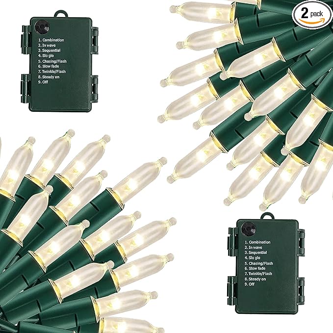 - Christmas Mini String Lights: 50 LED mini string lights, string lights length is 16 ft, lead wire length is 1 ft, lamp spacing is 4 inch. The green cord is suitable for Christmas tree decoration. Decorating Christmas with battery operated string lights, add a warm festival ambiance.