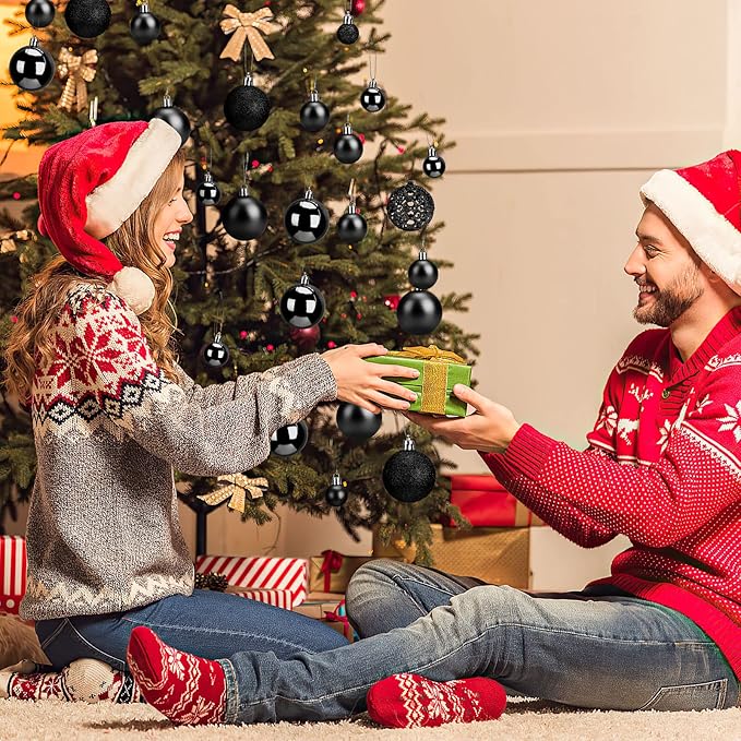 Aitsite 100 Pack Christmas Tree Ornaments Set Mini Shatterproof Holiday Ornaments Balls for Christmas Decorations (Black)