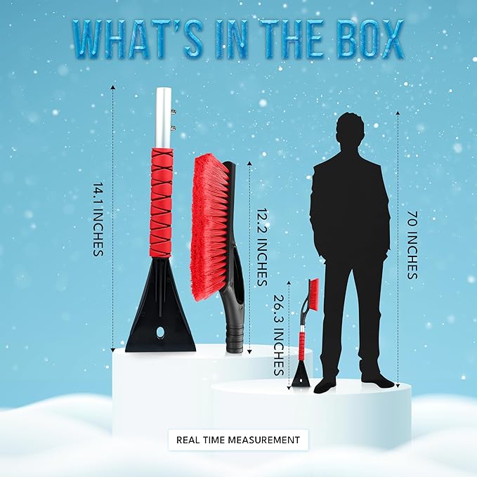 - Universal Fit for All Vehicles: Measuring 27 inches in total, the red color snow remover for cars provides extended reach, while the 9.5-inch brush and 4.3-inch scraper are perfectly sized for quick and efficient snow and ice removal on any vehicle type, including SUVs.
