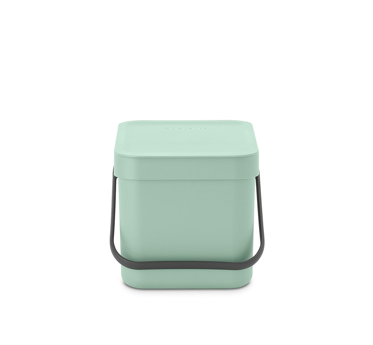 Brabantia Sort & Go Food Trash Can (1.6 Gal/Jade Green) Small Countertop Kitchen Compost Caddy with Handle & Removable Lid, Easy Clean, Fixtures Included for Wall/Cupboard Mounting