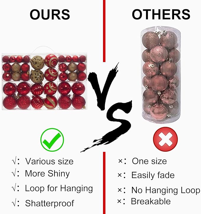 - Buy with Confident: All our Christmas ball ornaments are guaranteed by quality. Take your confidence to choose us. If there are any problems with our products, please contact us at the first time, we support unconditional return and exchange. Merry Christmas!
