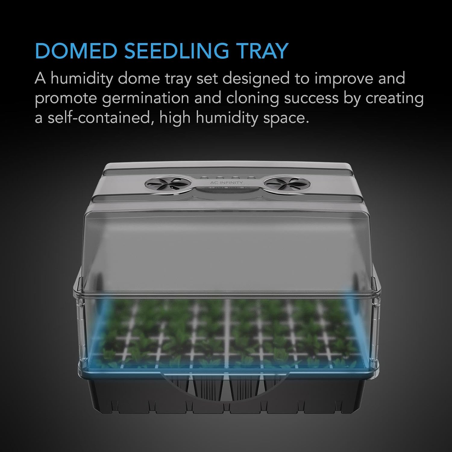 - Domed plant tray designed to improve germination and cloning success inside a high humidity space.