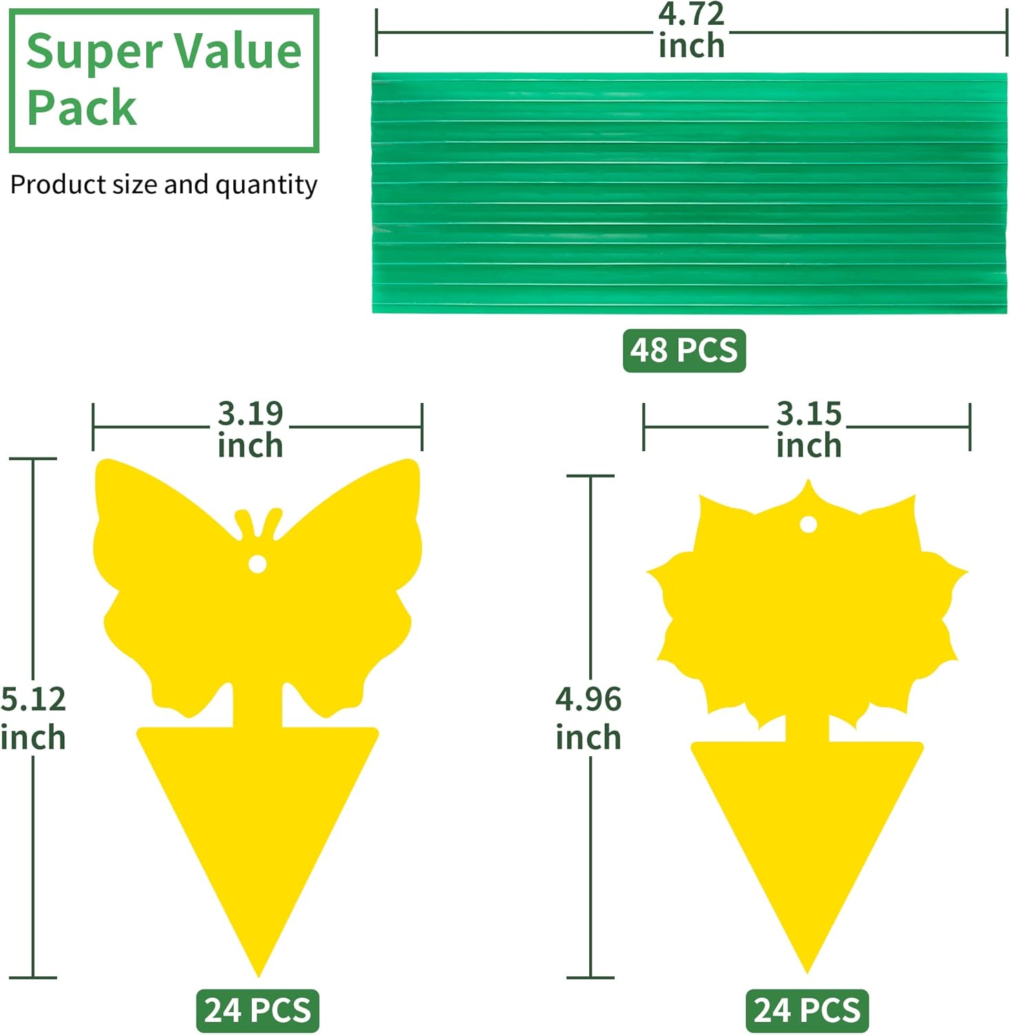 LULUCATCH Fruit Fly Sticky Trap 48 Pack, Safe Gnat Traps for Fruits, Plants, Super Sticky Fly Trap for Indoor, Outdoor, Kitchen, Insect Catcher for White Flies, Mosquitos, Fungus Gnats, Flying Insects