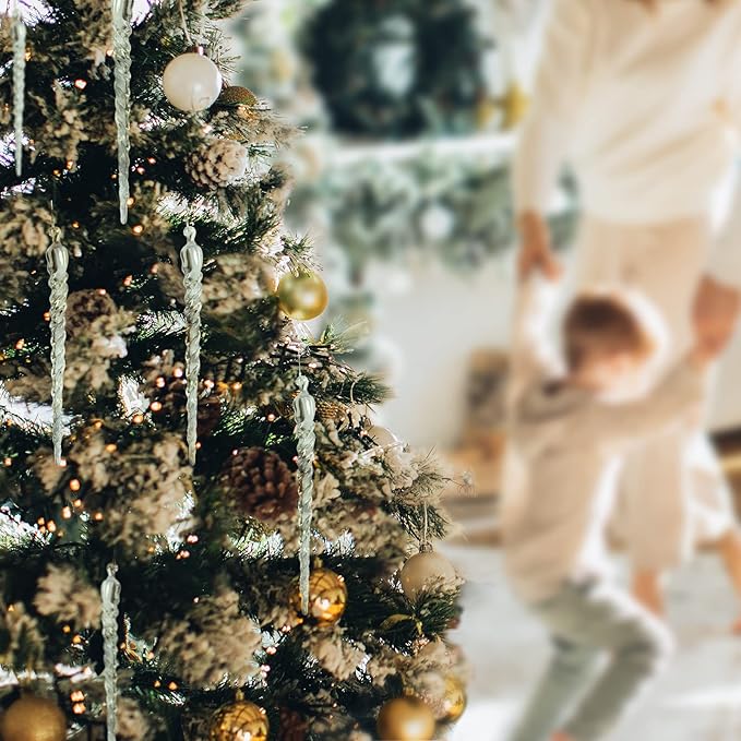 AMS Christmas Sparkling Glitter Icicle Ornaments 30 PCS Acrylic Icicles Ornament Set for Christmas Tree New Year Party Decorations Supplies(5.8''/14.8cm, Clear)
