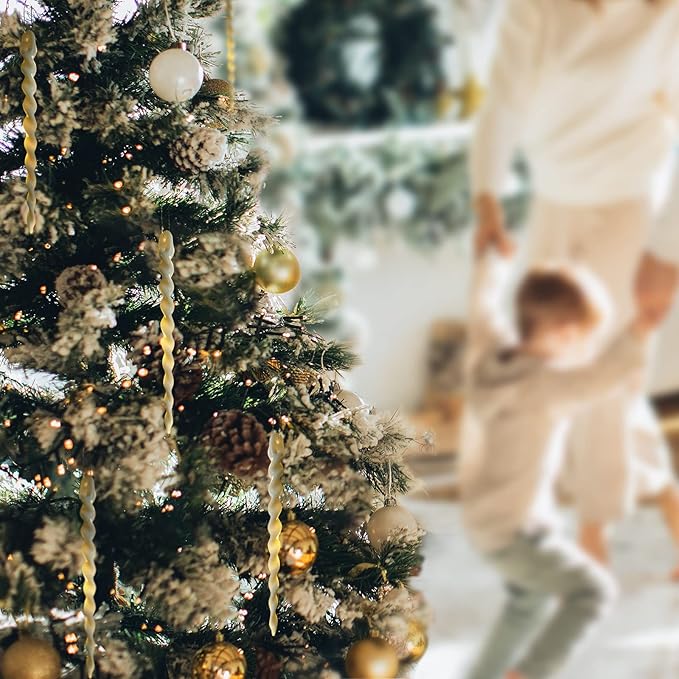 AMS Christmas Sparkling Glitter Icicle Ornaments 30 PCS Acrylic Icicles Ornament Set for Christmas Tree New Year Party Decorations Supplies(5.3''/13.5cm, Ivory White)