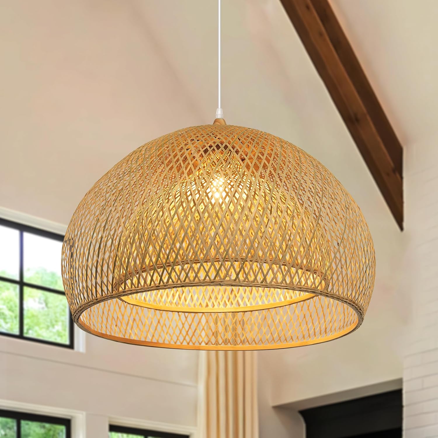 - Material:This handwoven chandelier is made of bamboo,the natural bamboo material is a vintage decoration for your room