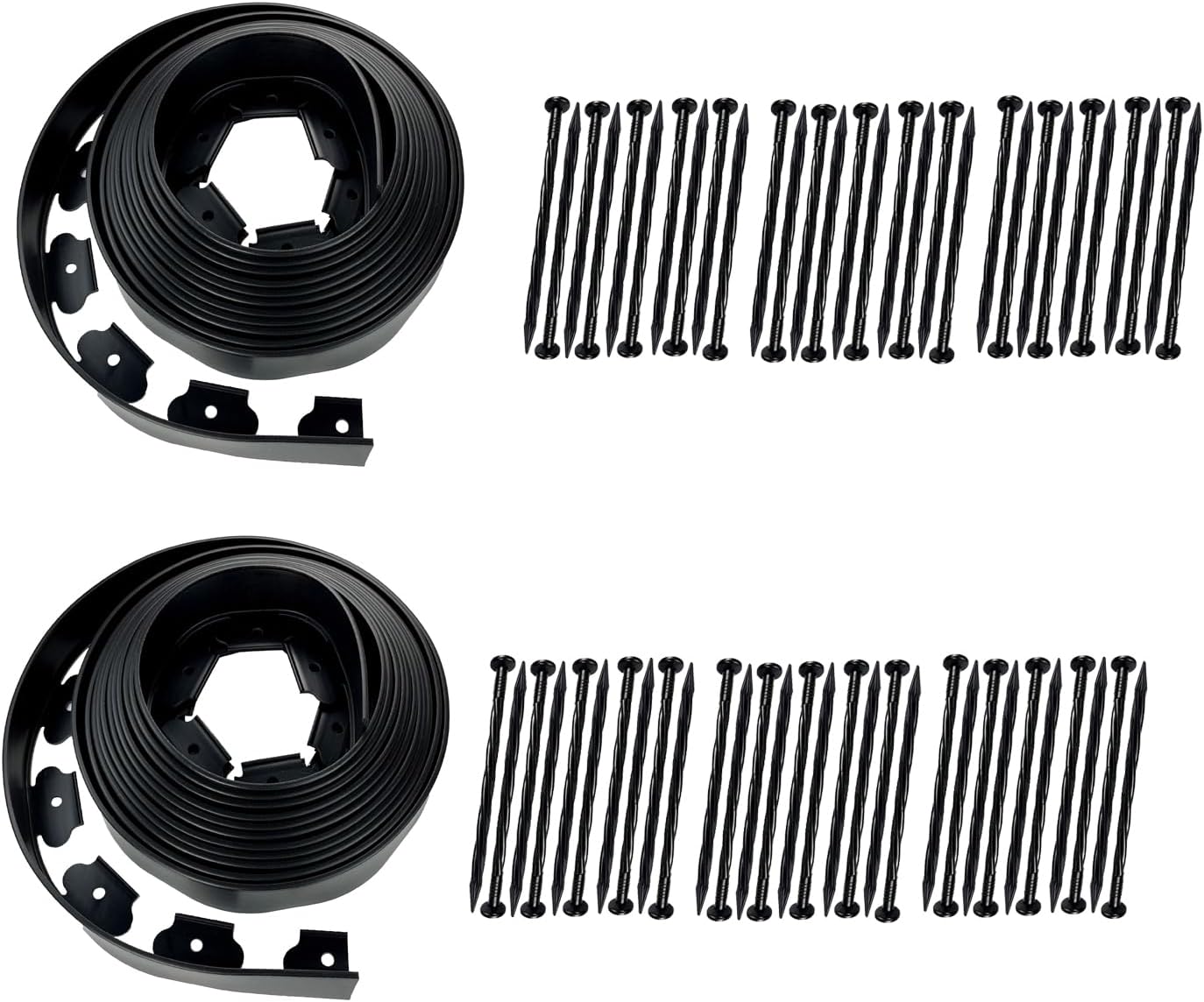Hugeleaf Landscape Edging 2 Inch Tall 60 Feet Garden Edging Border with 60pcs Stakes, Plastic Edging for Landscaping,Lawn,Flower Beds, Paver Edging (Black)
