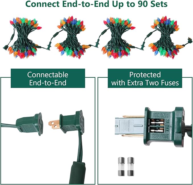 - 【Wide Application】UL listed. These lights are perfect for indoor and outdoor displays, a timeless classic on your house, and ideal decoration lights for room, roofline, garden, balcony, Christmas tree, party, and holiday decorations. Light up your holiday to enjoy Christmas!