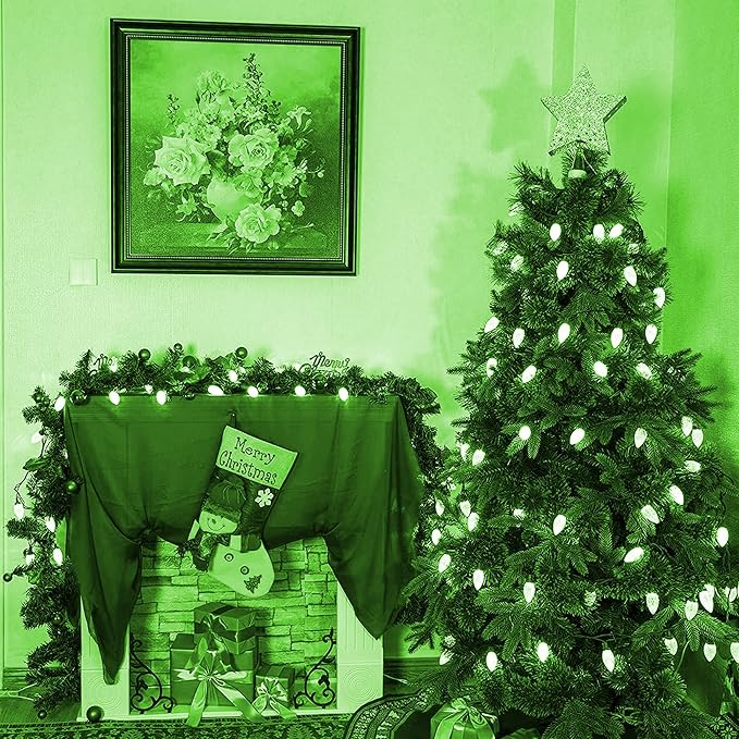Dazzle Bright C9 Christmas String Lights, Waterproof Connectable Green Wire Fairy Lights, Christmas Lights for Indoor Outdoor Home Yard Xmas Tree House Decorations (Green, 100 LED)