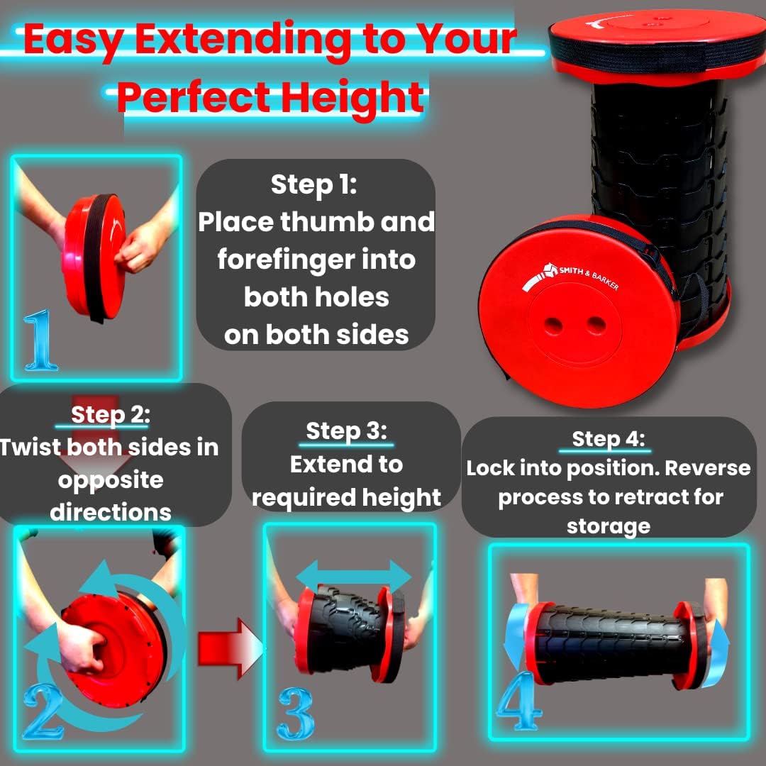 Smith & Barker Upgraded for 2025 Premium Telescopic Folding Stool for Adults and Children Outdoor Indoor Portable Collapsible Foldable Fishing Hiking Camping Festivals Seat (Black)
