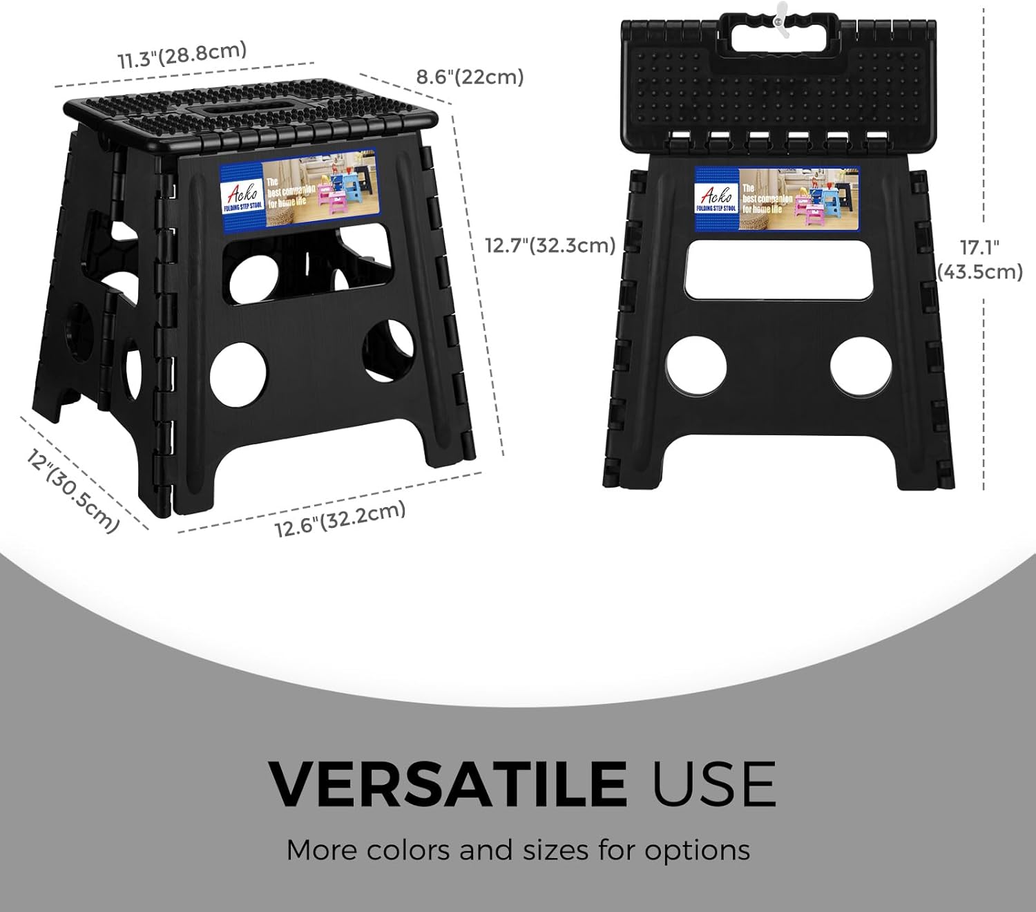 - Space-Saving Design: This stepping stool easily collapses for compact storage, making it perfect for homes with limited space. It can be tucked away conveniently when not in use