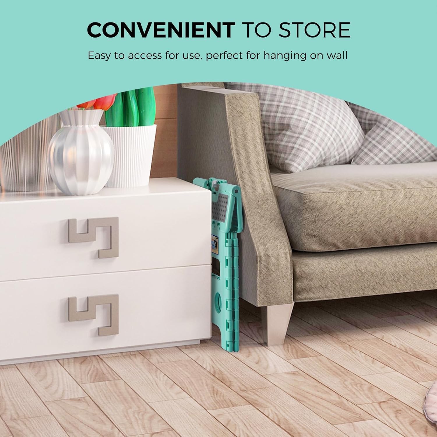 ACKO Folding Step Stool 13 Inch Stool Heavy Duty Plastic Foldable Step Stools for Kids, Stepping Stool with Handle, Folding Stool Suitable for Kitchen Hold Up to 300 LB (Teal 1PC)