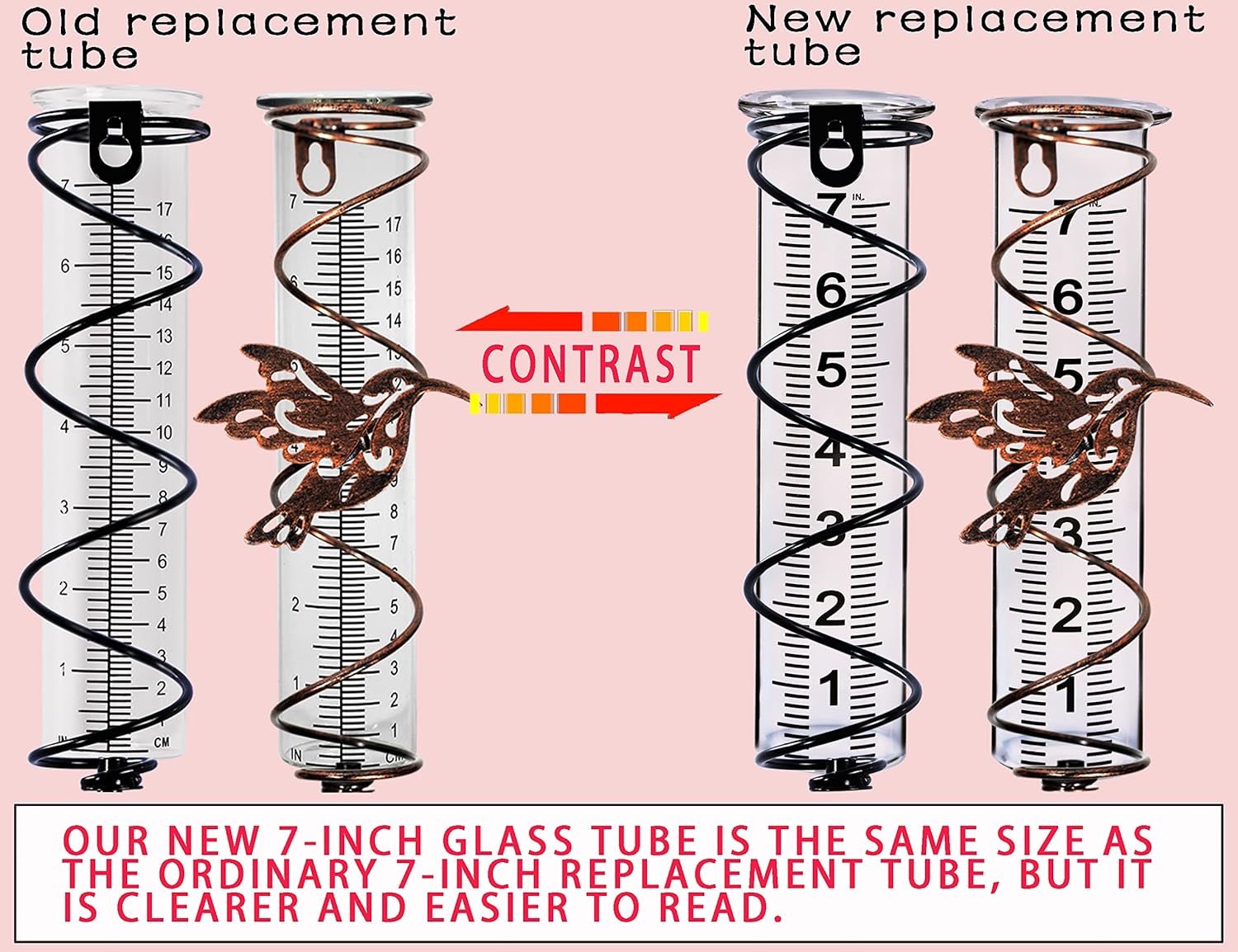 - 【Easy to read】Improved large font and clear scale for easier reading. Clear color, standard inch increments, better than other rain gauge glass tubes on the market.