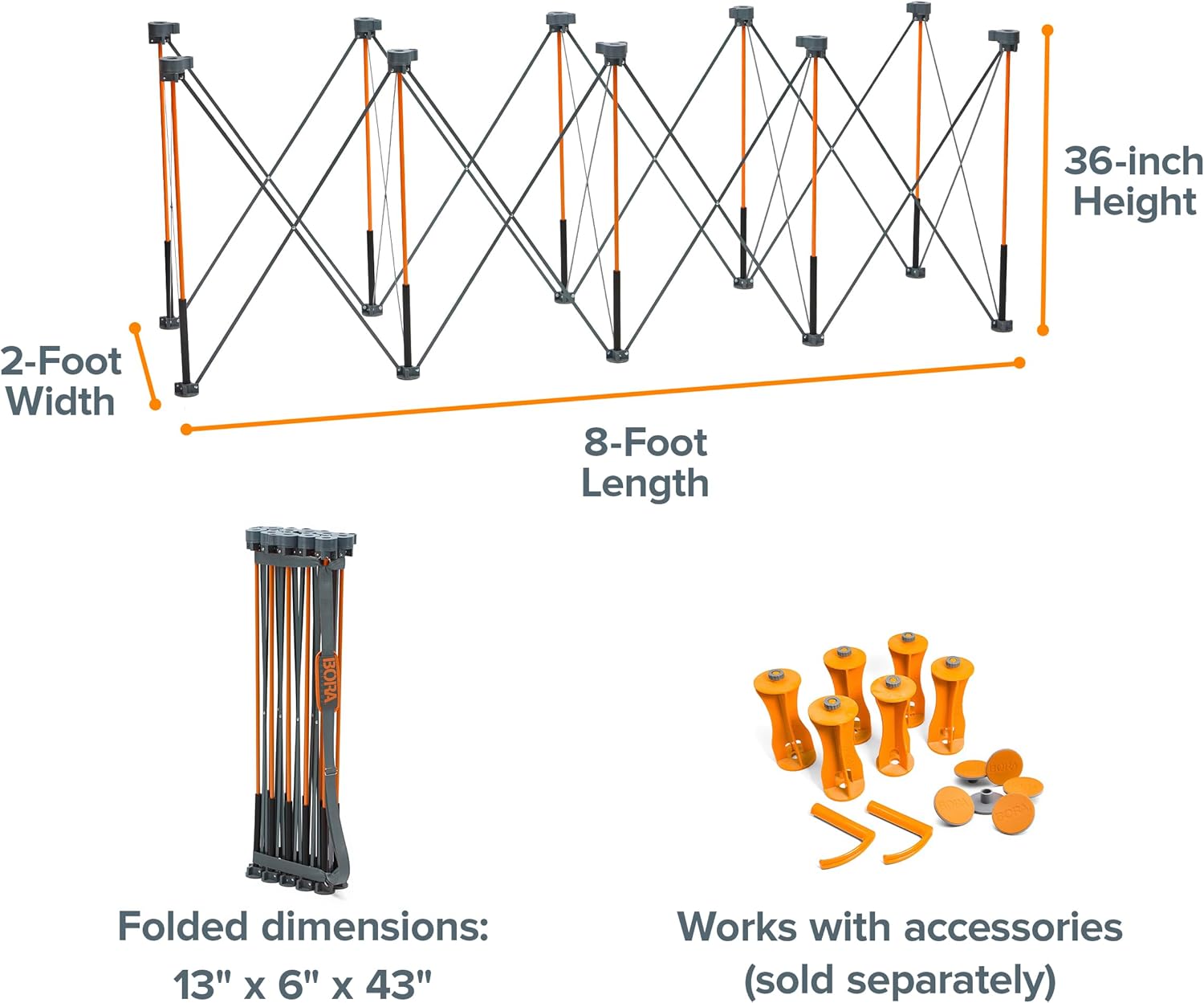 BORA Centipede CT10 36 inch Tall Portable Folding Workbench with Carry Strap, Collapsible Workstand, Construction Table, Support, Sawhorse, 2Ft X 8Ft, 36 inch Work Height, 2,500lb Weight Capacity