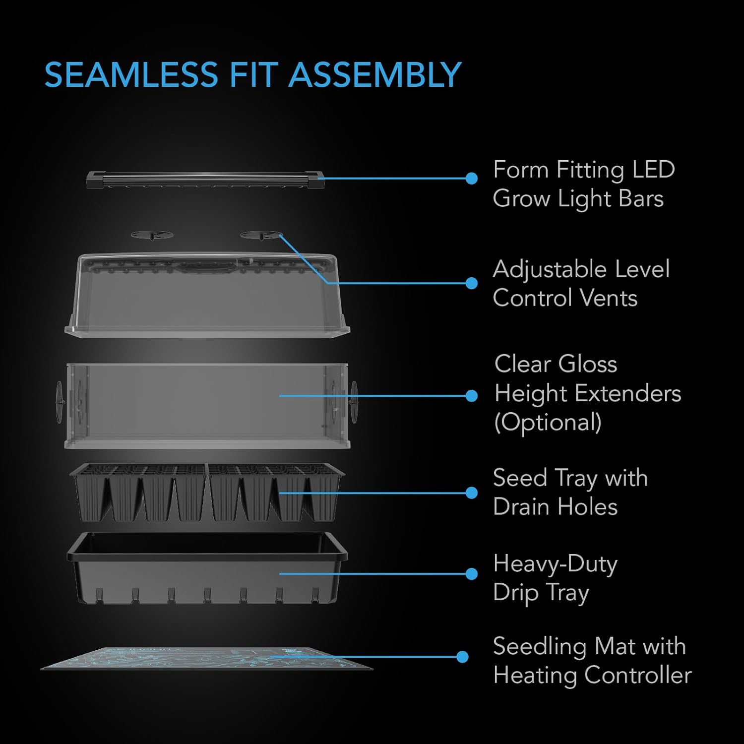 AC Infinity Heavy-Duty Humidity Dome 5x8 Germination Kit with Waterproof Seedling Mat, Full Spectrum LED Grow Light Bars, Samsung LM301H EVO Diodes, Vented Extension Panels, for Seed Starting