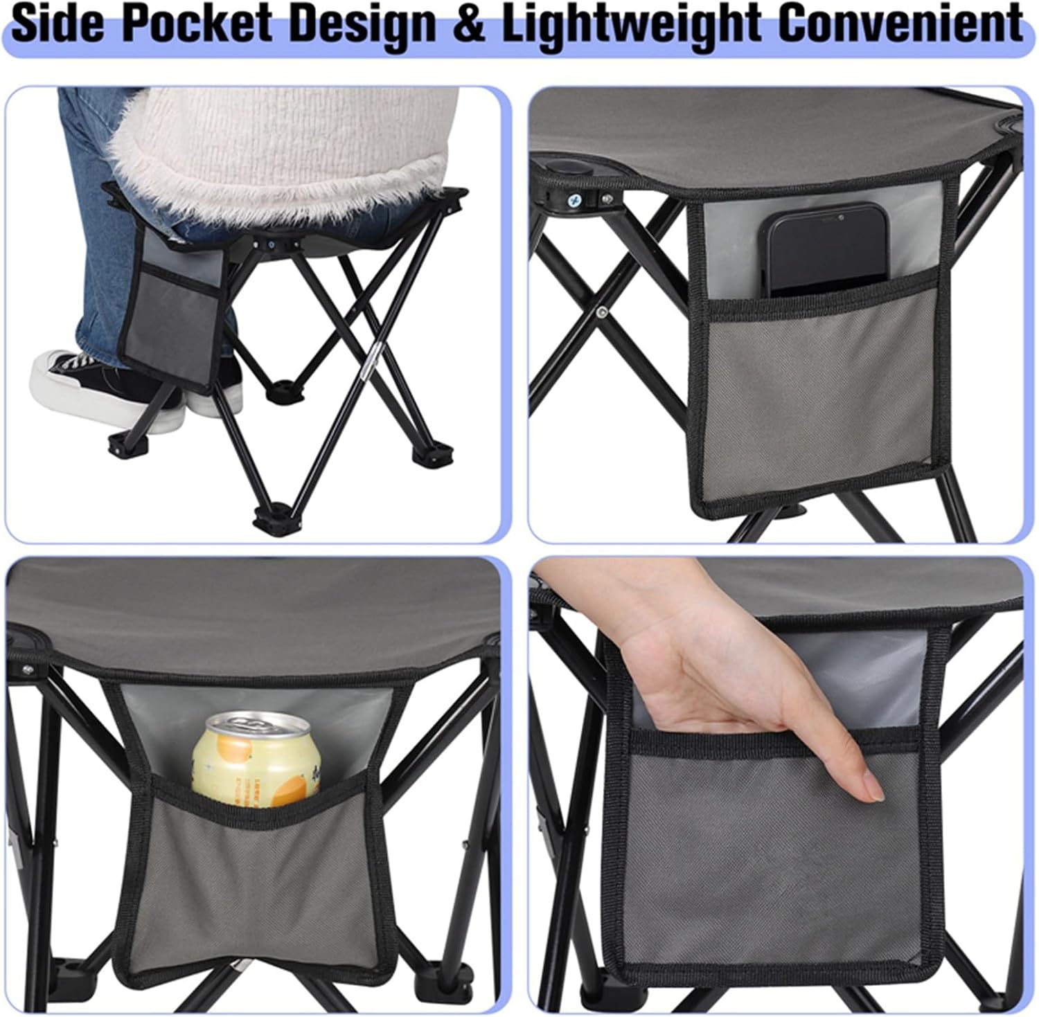 - CAMPING CHAIRS WITH CARRY BAG: Easy to carry with specially potable bag,and there is a side pocket on the side of the stool,when you are fishing or sketching, you can put small objects such as mobile phones, umbrellas, brushes, water, etc.