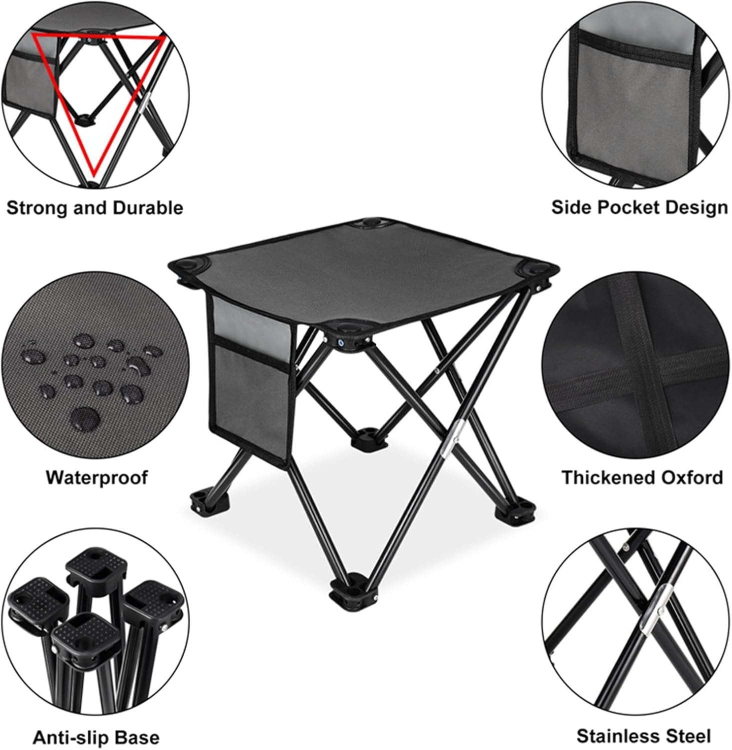 - STURDY : This mini potable seat are made of steel frame and 600D waterproof polyester fabric, The steel frame is ultra-light and the four-legged design can provide better support, 600D seat is soft and comfortable. Even if you sit on a camping stool for a long time, you will not feel tired