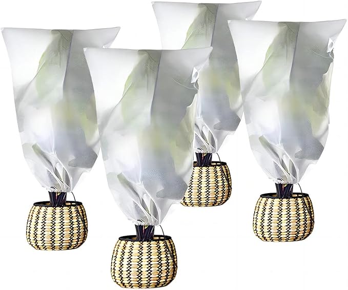 Agfabric Plant Covers Freeze Protection 72"x72"x12" 0.9oz Freeze Cloths for Plants Plant Frost Protection Covers Drawstring Bags Shrub Jacket Warm,White,4 Pack