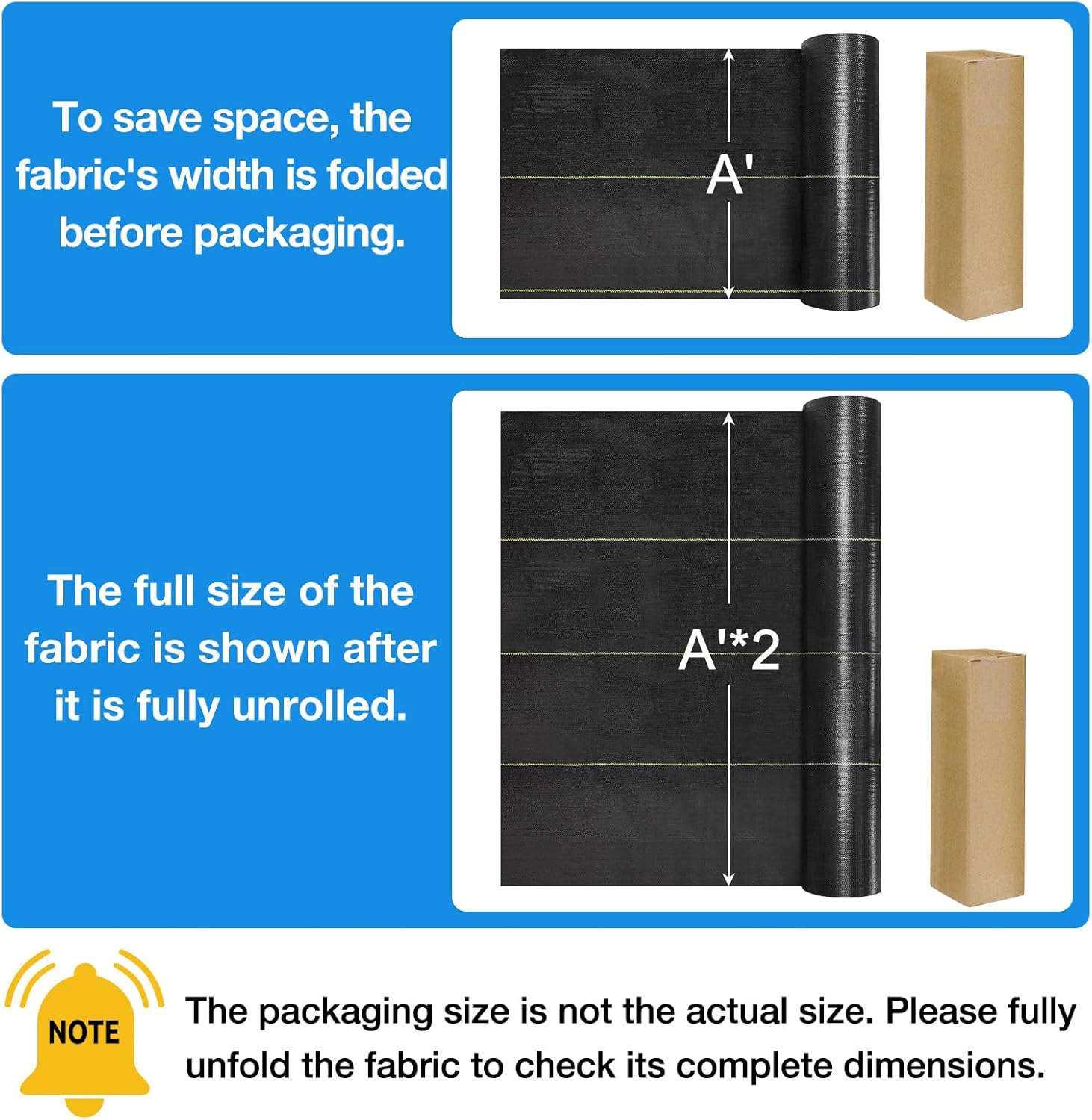 - Premium Landscape Fabric: The weed barrier is crafted from high-quality and durable material. made of woven polypropylene material, it's a strong and reliable barrier that's resistant to UV rays, water, and other outdoor elements. This means that you can trust it to provide long-lasting protection against weeds in your garden