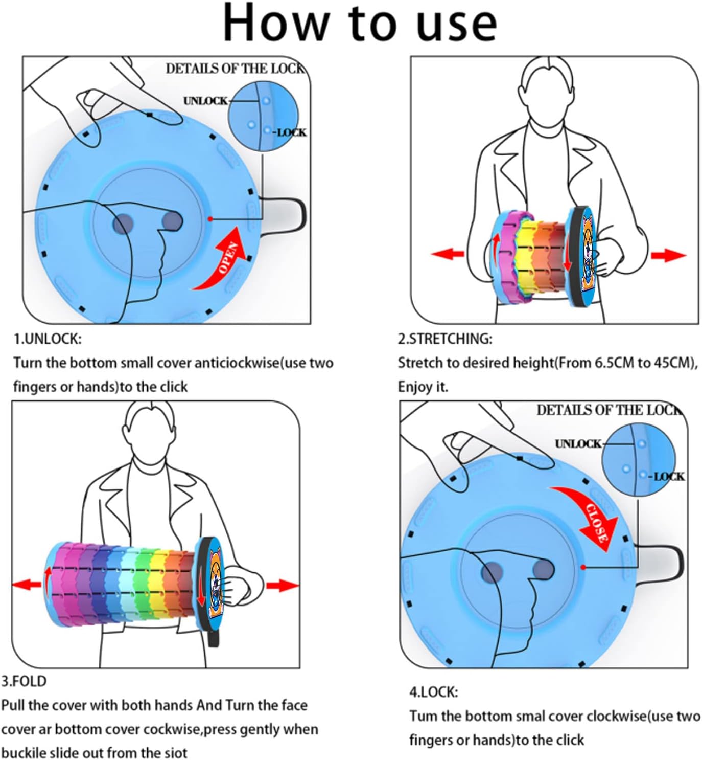 - 【Multi-wide Application】 The telescoping stool is suitable for any occasions. Indoor occasions such as the living room, bedroom, bathroom, mountain,kitchen,beach,pool, office; Outdoor activities like camping, fishing,hunting, hiking, BBQ, picnic, queuing, gardening. It is the synonymous of fashion and popular. Don't hesitate, you deserve it~