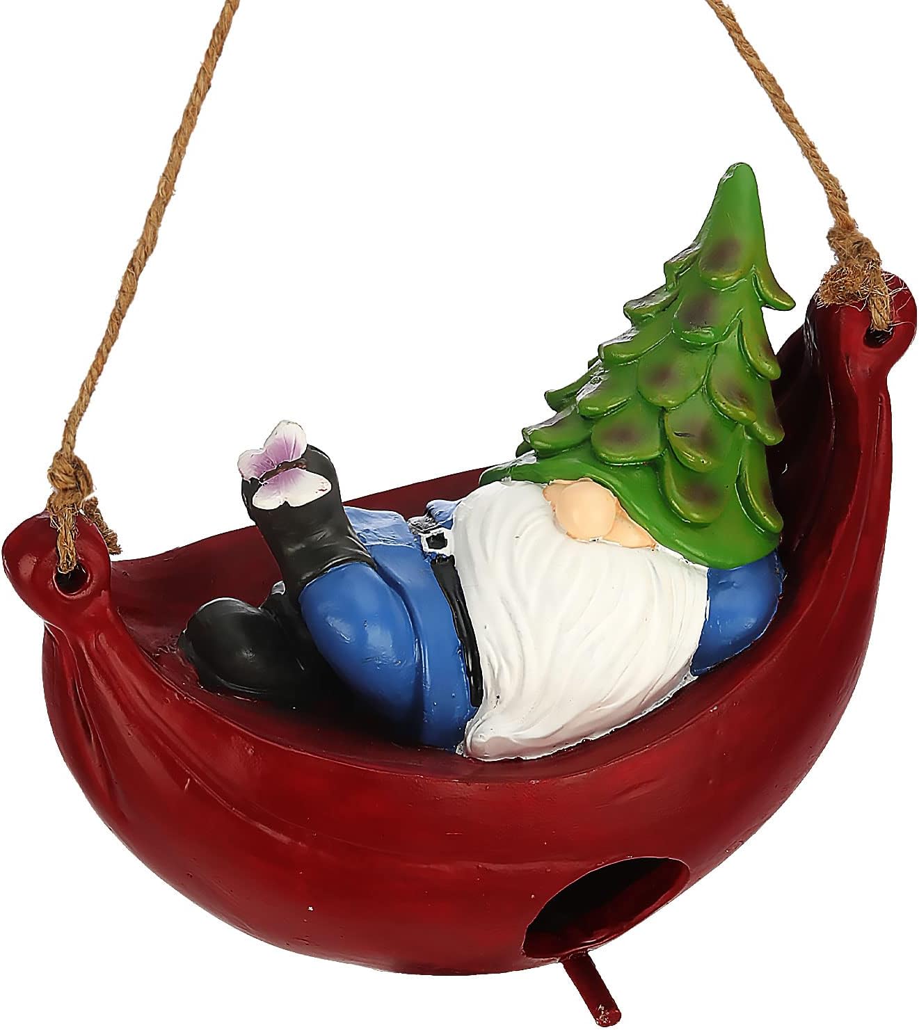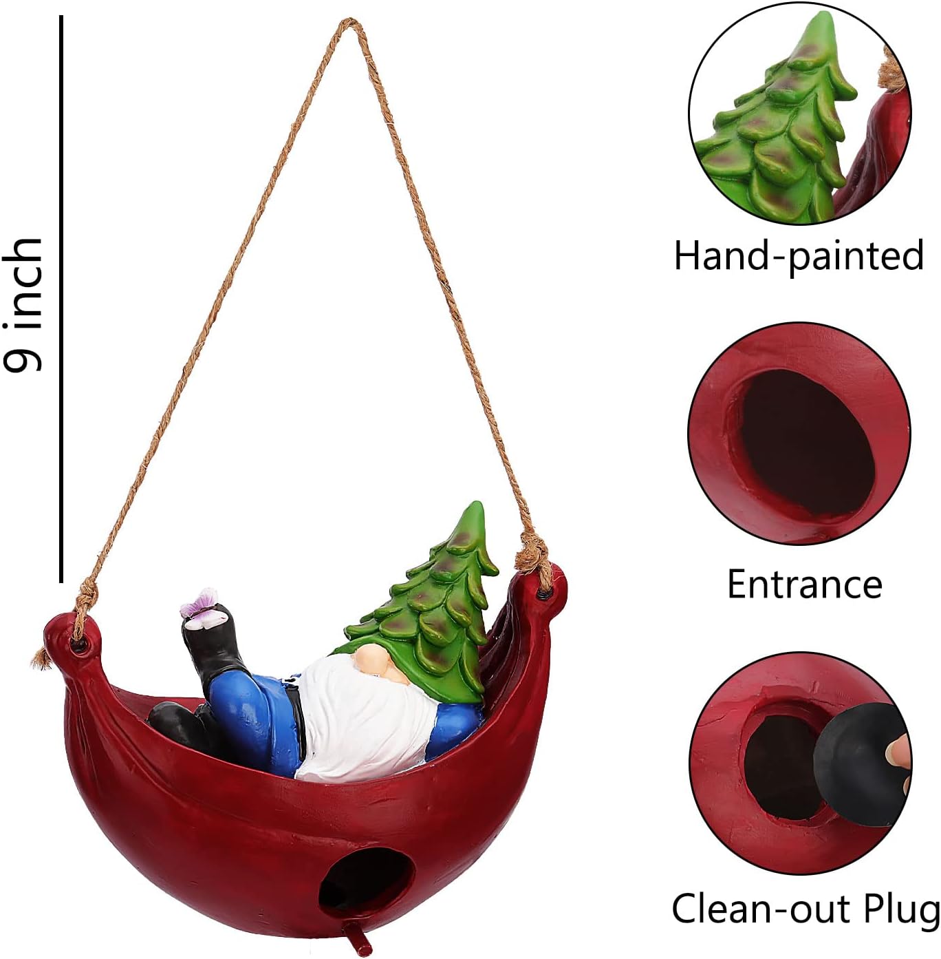 BAYN Bird House for Outside, Hanging Handcrafted Hammock Gnome Resin Outdoor birdhouses Humming Bird, Bluebird, Wren, Camper Hanging Houses nest cage