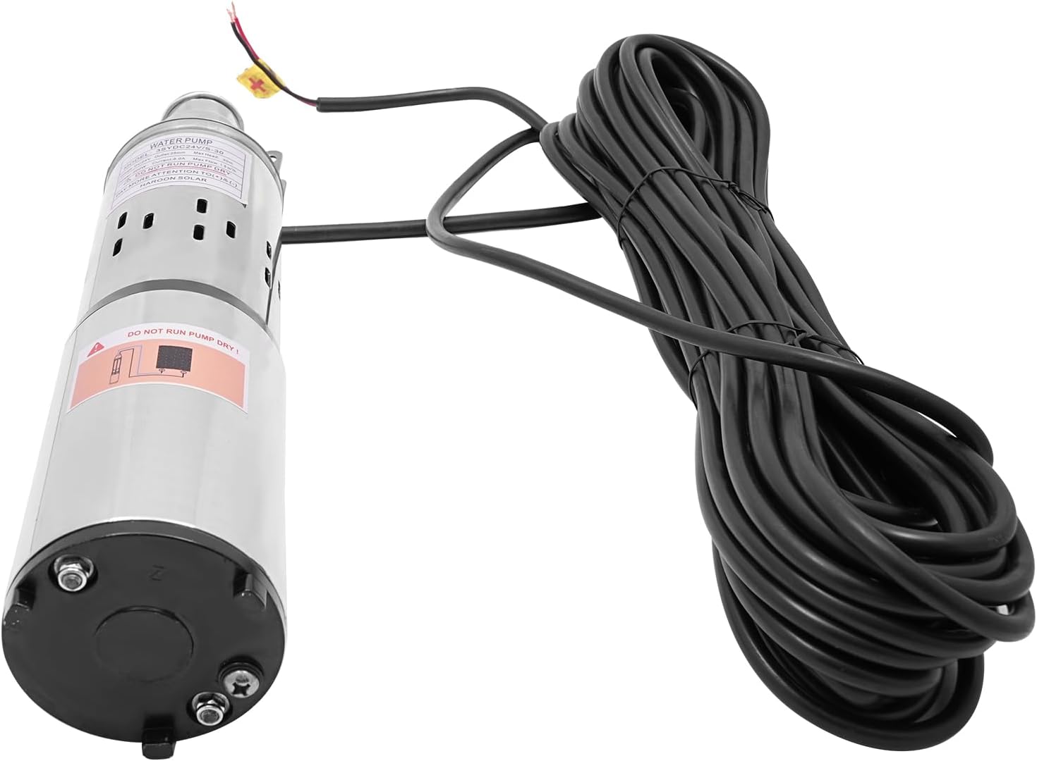 Deep Well Submersible Pump DC 24V 200W Electric Solar Powered Water Pump, 5.3 GPM Flow, 98ft Lift, Farm Ranch Irrigation Submersible Bore Hole Deep Well Pump