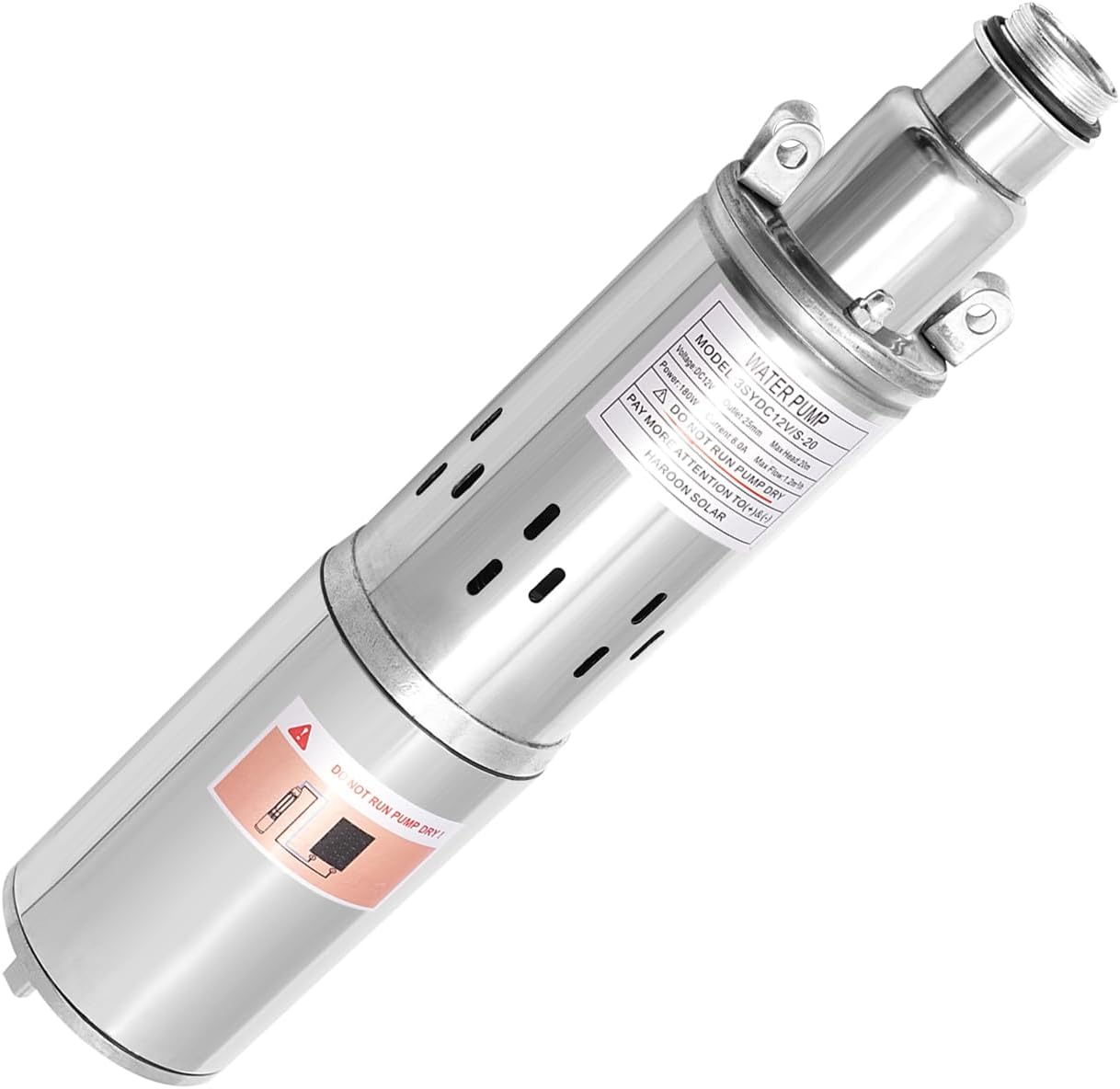 Deep Well Submersible Pump DC 12V 180W Electric Solar Powered Water Pump, 5.3 GPM Flow, 82ft Lift, Farm Ranch Irrigation Submersible Bore Hole Deep Well Pump
