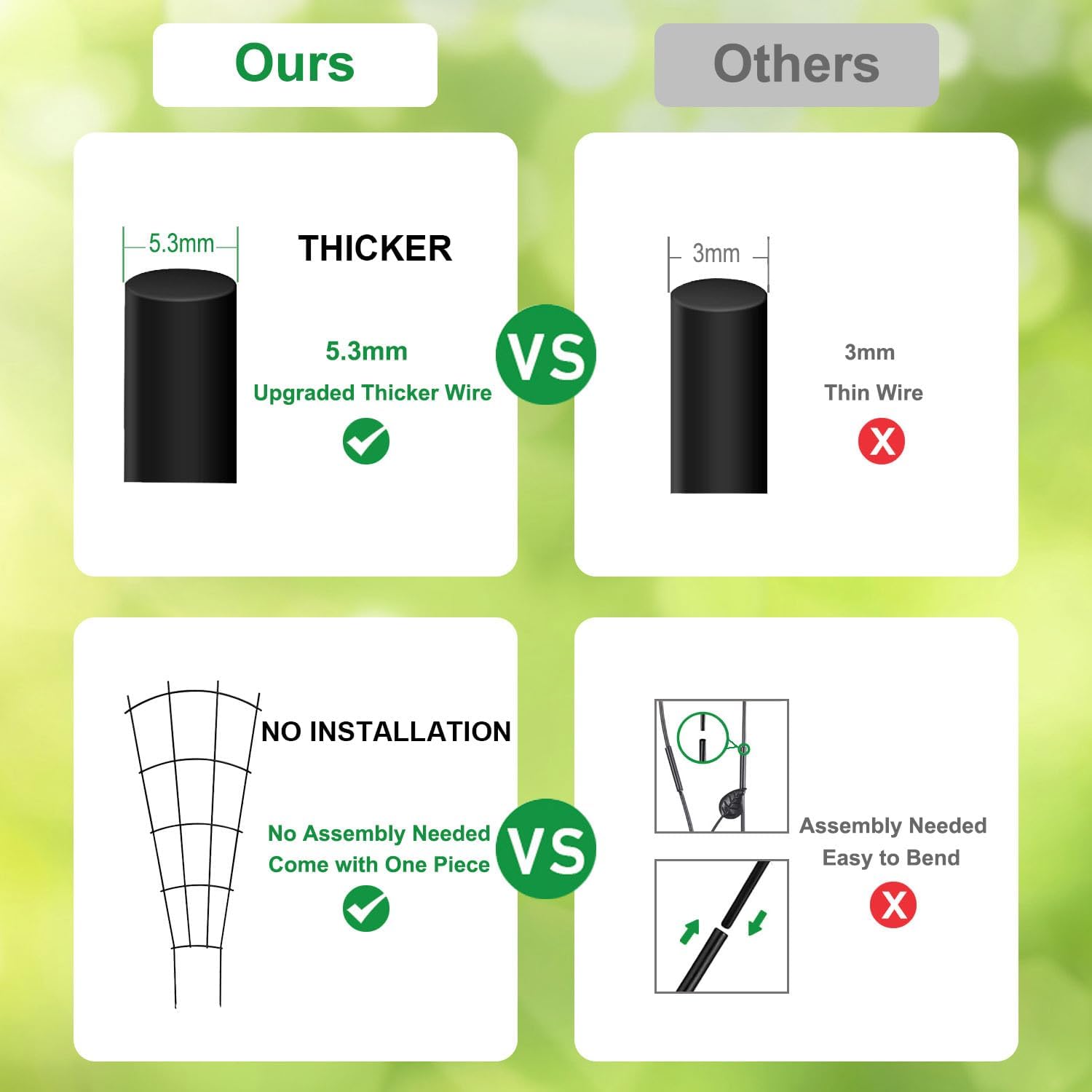 - STURDY COATED METAL: Made of high quality steel wire with black powder coated finish, our metal garden trellis for climbing plants are super sturdy, weatherproof and provide strong support for flowering vines or bushy climbing plants indoor and outdoor