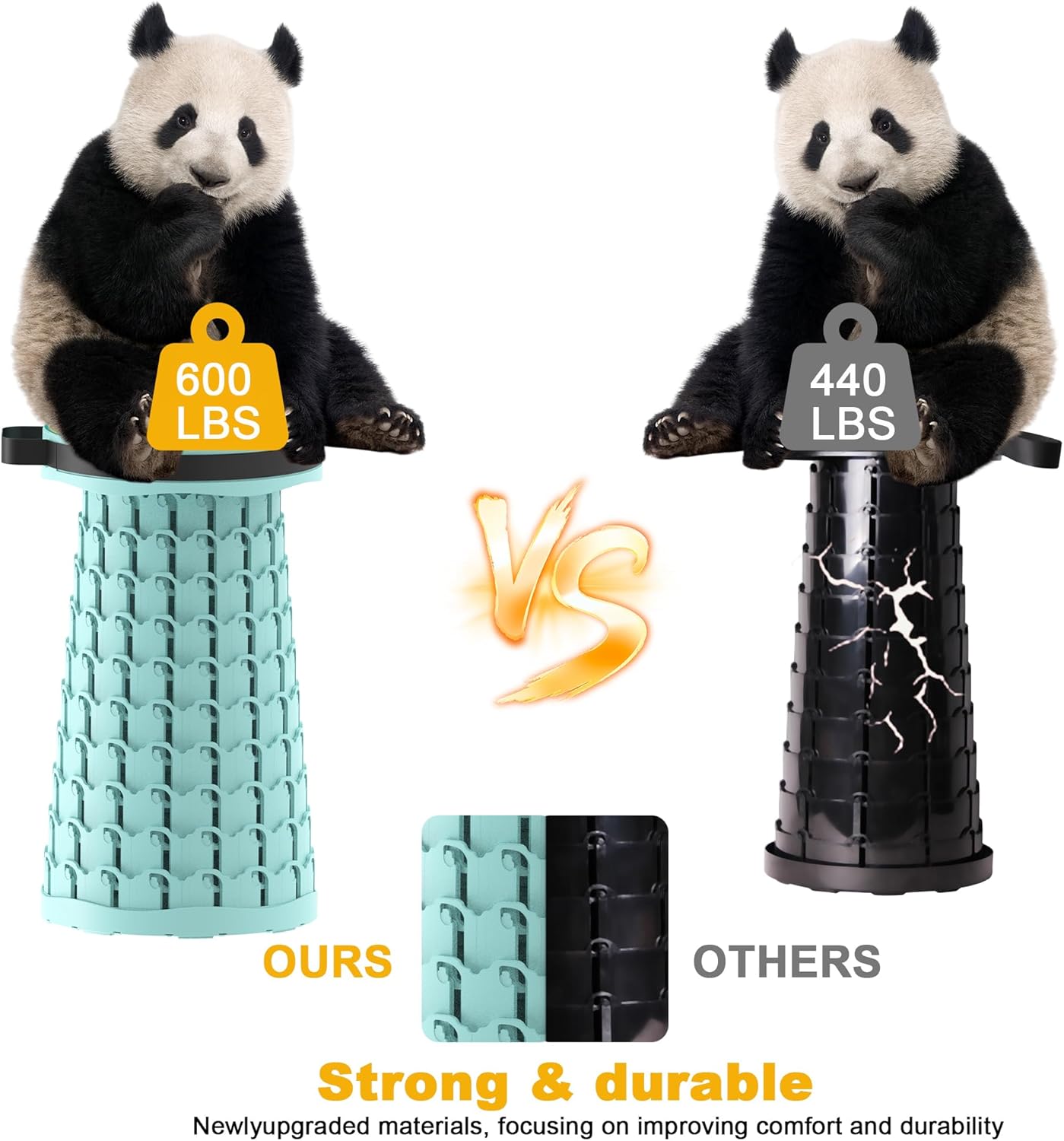 - 【ULTRA STABLE PERFORMANCE】 Upgraded telescoping structure and reinforced clasps give the foldable stool extraordinary stability and rigidity. Our Portable Travel Seat can support up to 600 lbs, far stronger than other similar products. Side support and the capacity of resistance to tilt are also reinforced, which makes the stool more sturdy and durable, ensure safety.
