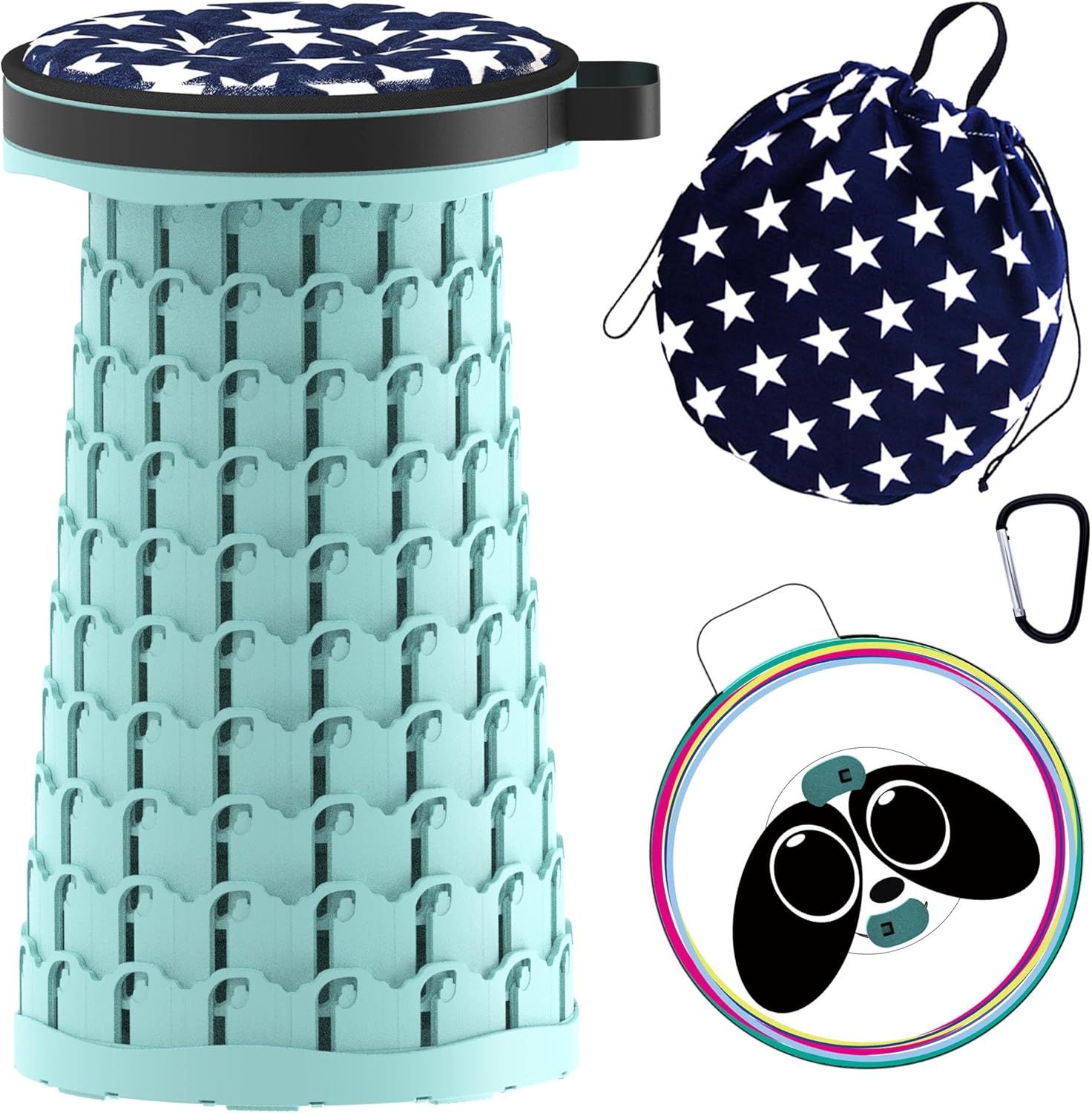 ALEVMOOM Upgraded Telescoping Collapsible Stool with Cushion, Folding Stool with Printing Portable Retractable Foldable Seat Max Load 600lbs for Adults Camping Fishing Outdoor