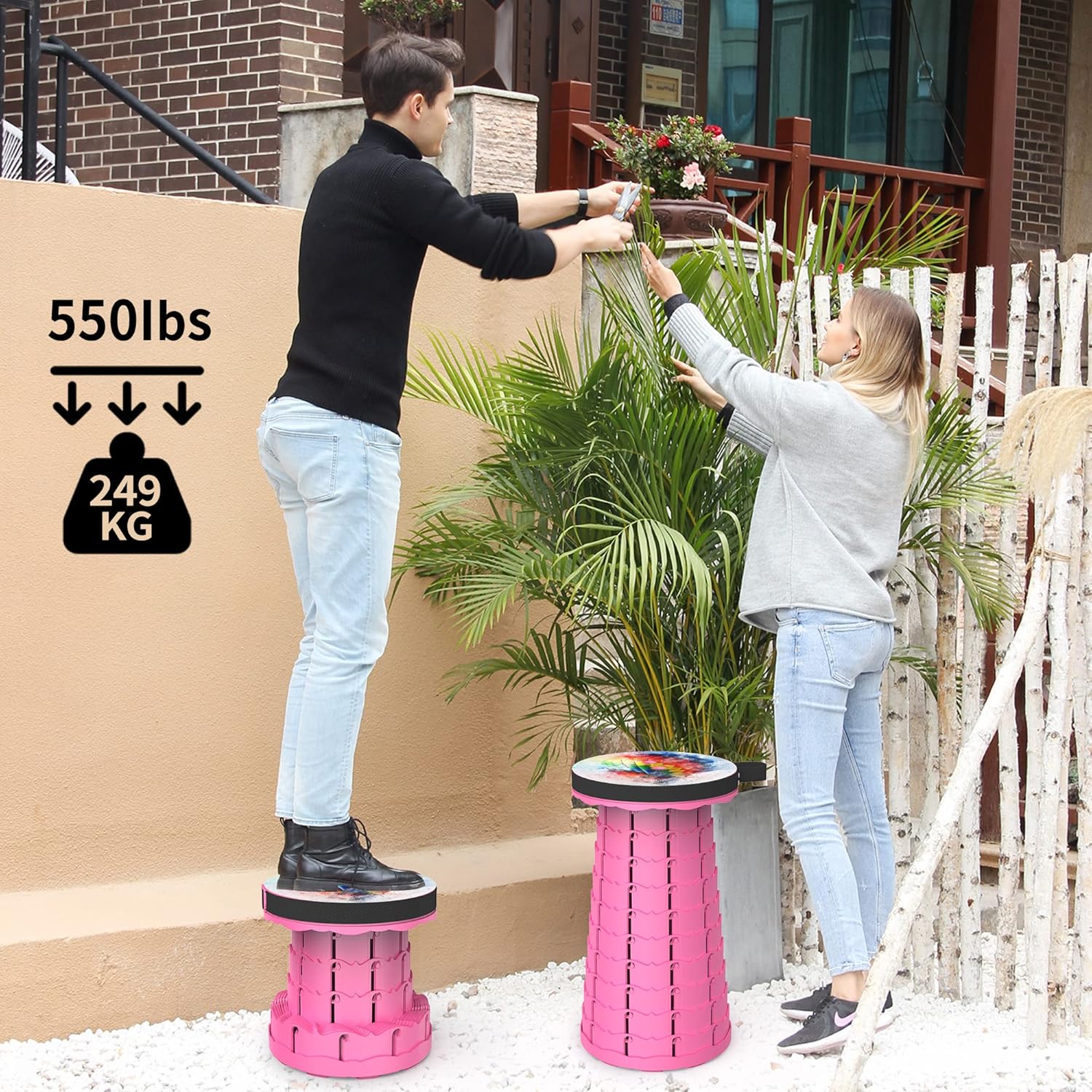 ALEVMOOM Upgraded Telescoping Collapsible Stool with Cushion, Folding Stool with Printing Portable Retractable Foldable Seat Max Load 550lbs for Adults Camping Fishing Outdoor
