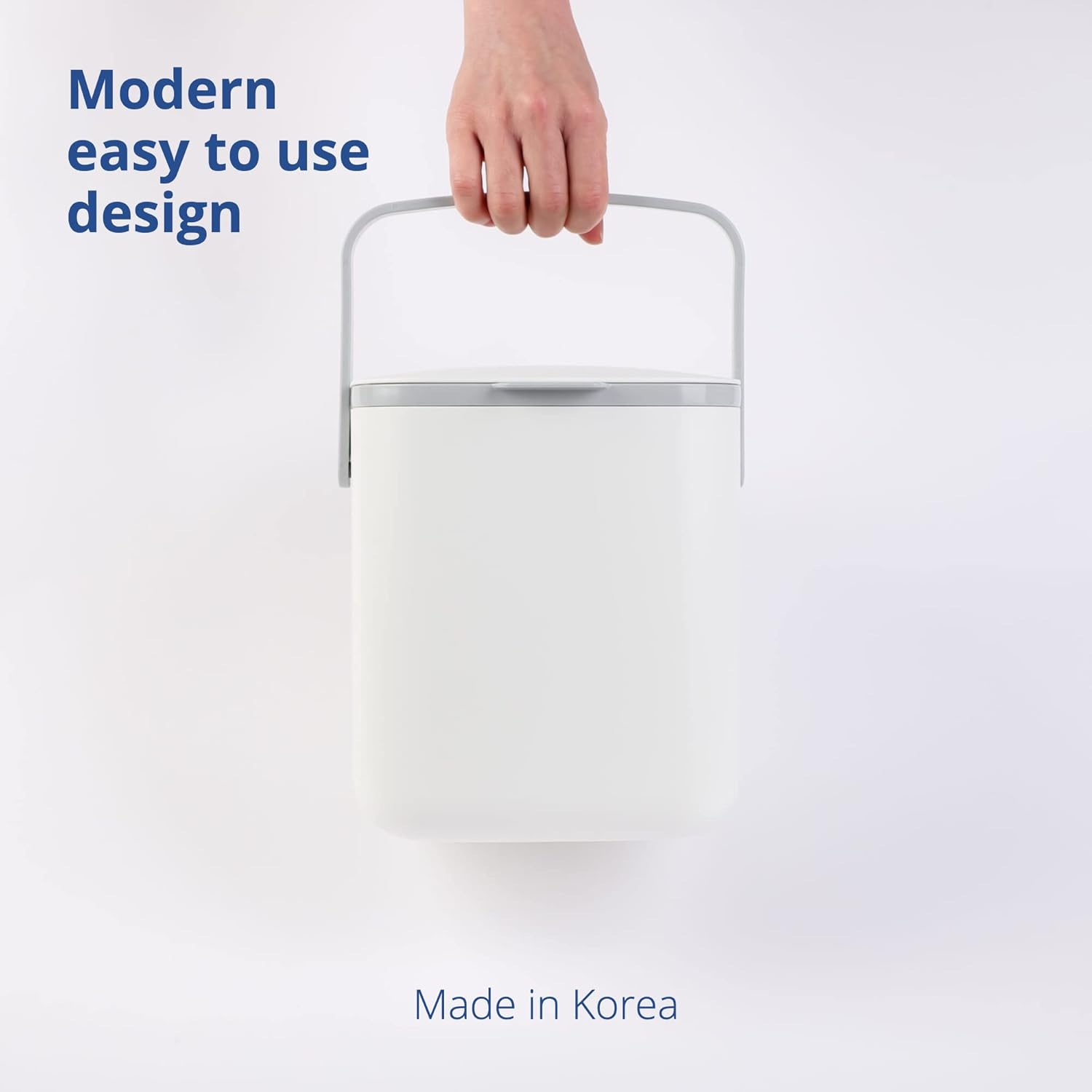 - EASY CLEANING - Made in South Korea from easy-to-clean dishwasher safe plastic, the inside of this indoor compost bin is smooth to prevent food waste from sticking, and the inner basket is removable, making cleaning a breeze. Whether you hand wash this food scrap bin or place it in the dishwasher, a clean compost pail is just a few minutes away.