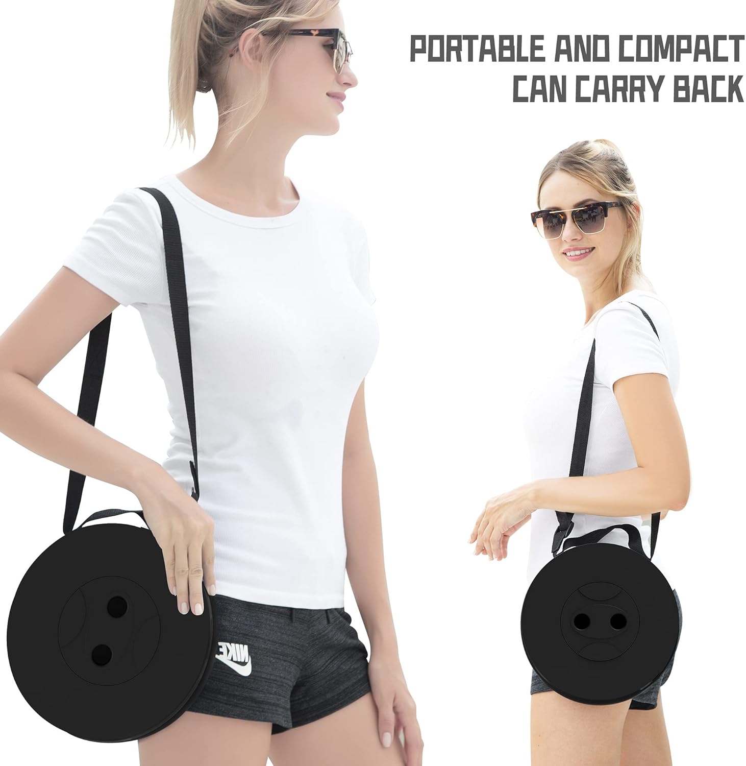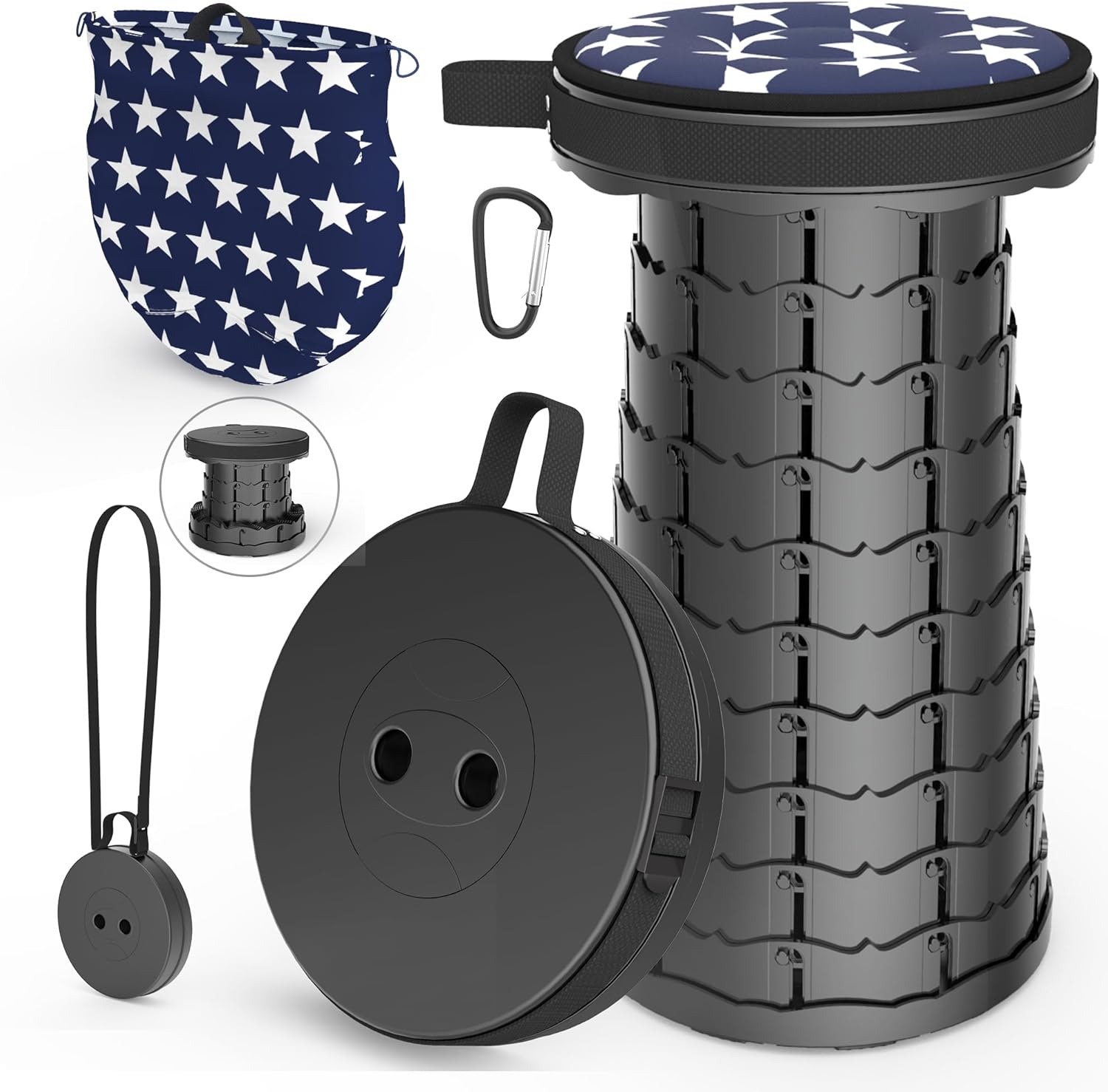 - 【LIGHTWEIGHT and PORTABLE】 This Telescoping Stool is only 9.8" in diameter and the weight is only 2.2Ibs. It can be put in a suitcase or storage box. The adjustable strap makes the chair easy to carry or hang on the shoulder. This ideal chair allows you to sit down anytime, anywhere.