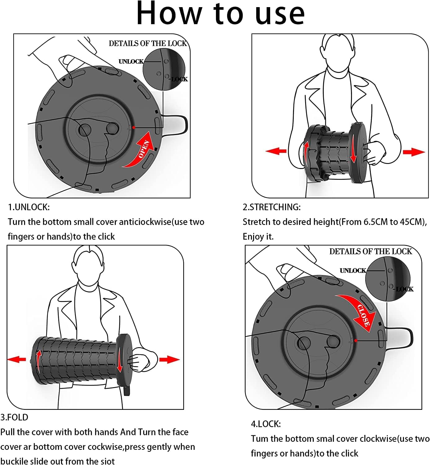 - 【ADJUSTABlE HEIGHT】 This Portable Stool can be adjusted to your desired height within the range of 2.4 to 17.71 inches. This makes it suitable for most adults to use anywhere!