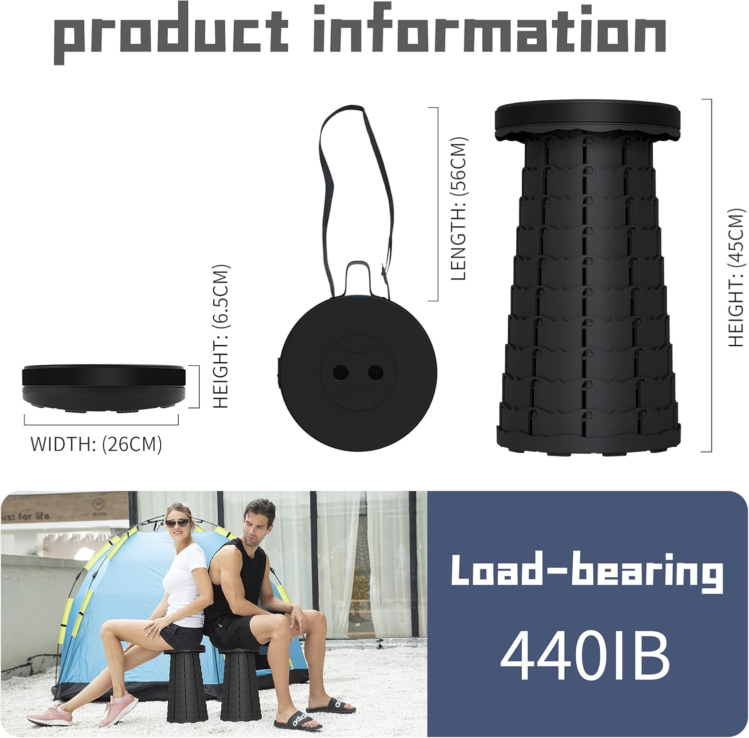 - 【SAFE and STABLE】 Made of environmentally friendly materials, cylindrical structure, tight connection buckles and non-slip base to ensure the stability of the folding stool, providing a safe and comfortable environment for sitting. The maximum load capacity is up to 440 pounds! It's a ideal choice both indoors and outdoors.