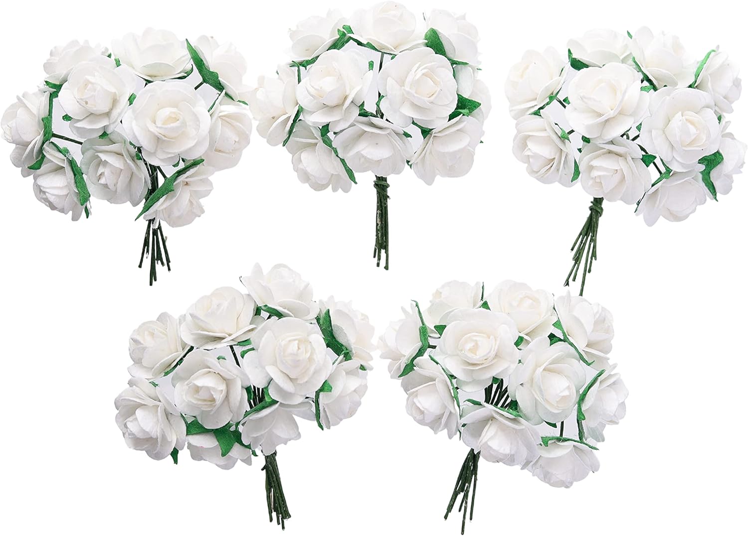 Handmade 50 pcs Mini Mulberry Paper Roses 18 mm Mulberry Paper Flowers Scrapbooking Wedding DIY Craft (White Color)